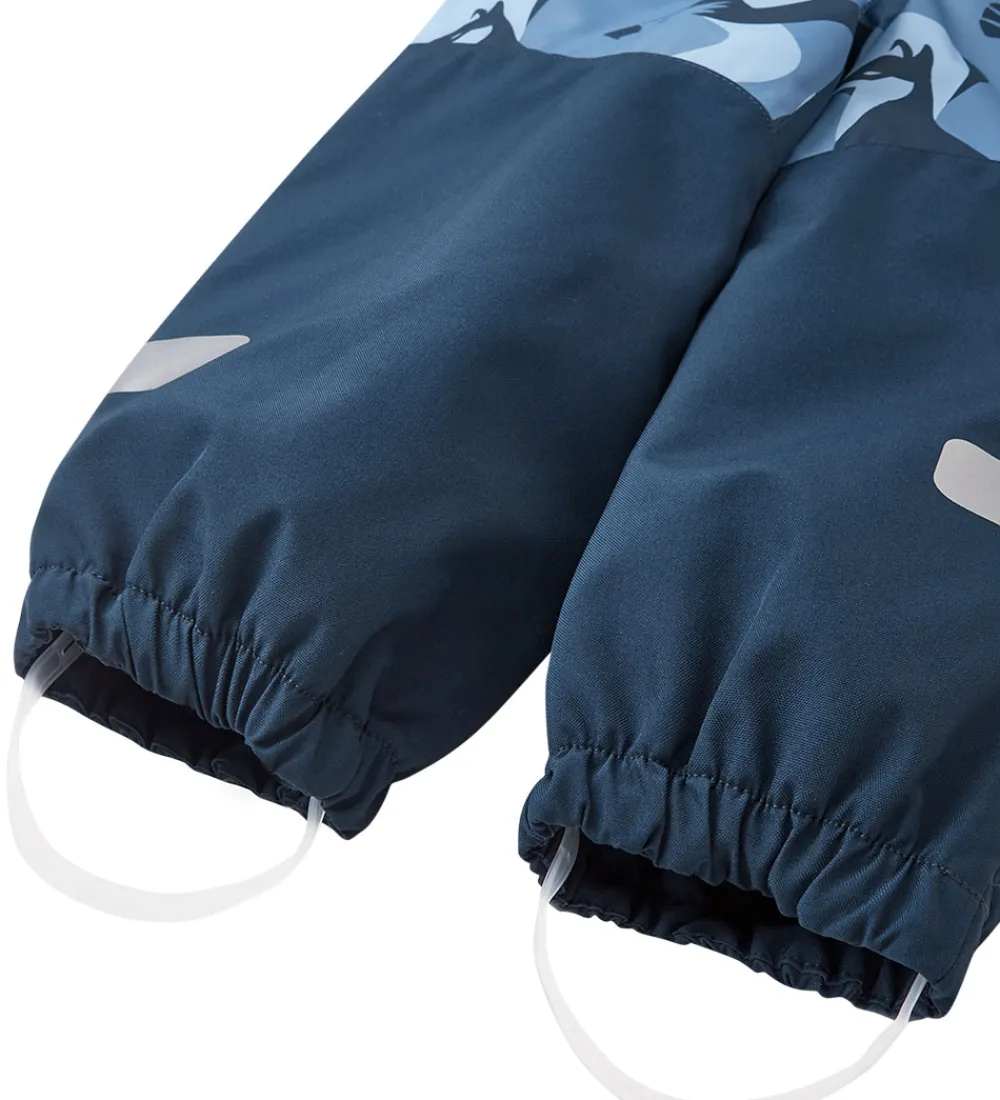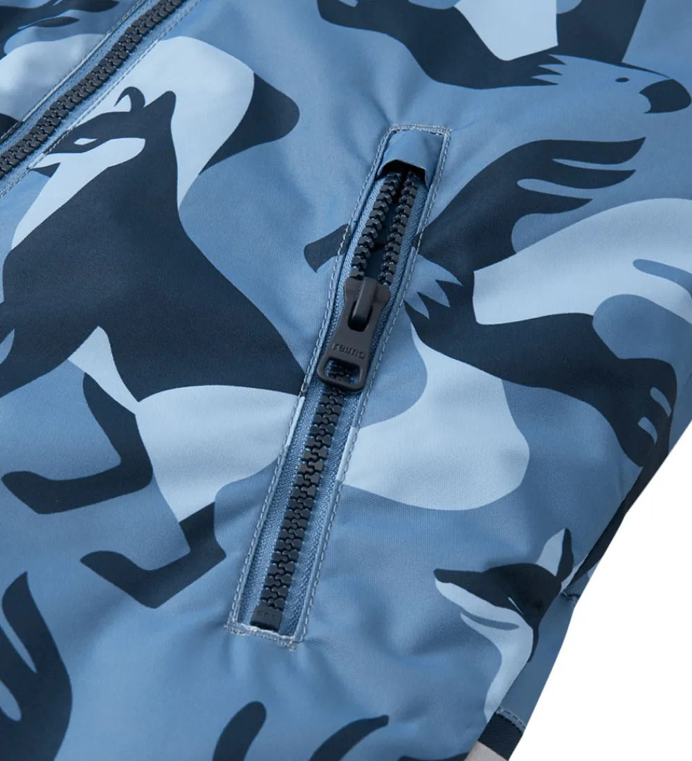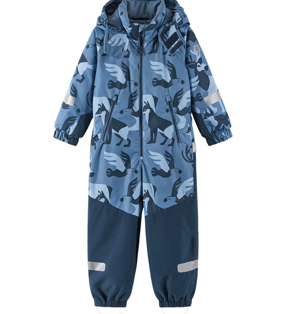 Skøn Reima flyverdragt i blå nuancer og med dyreprint.
