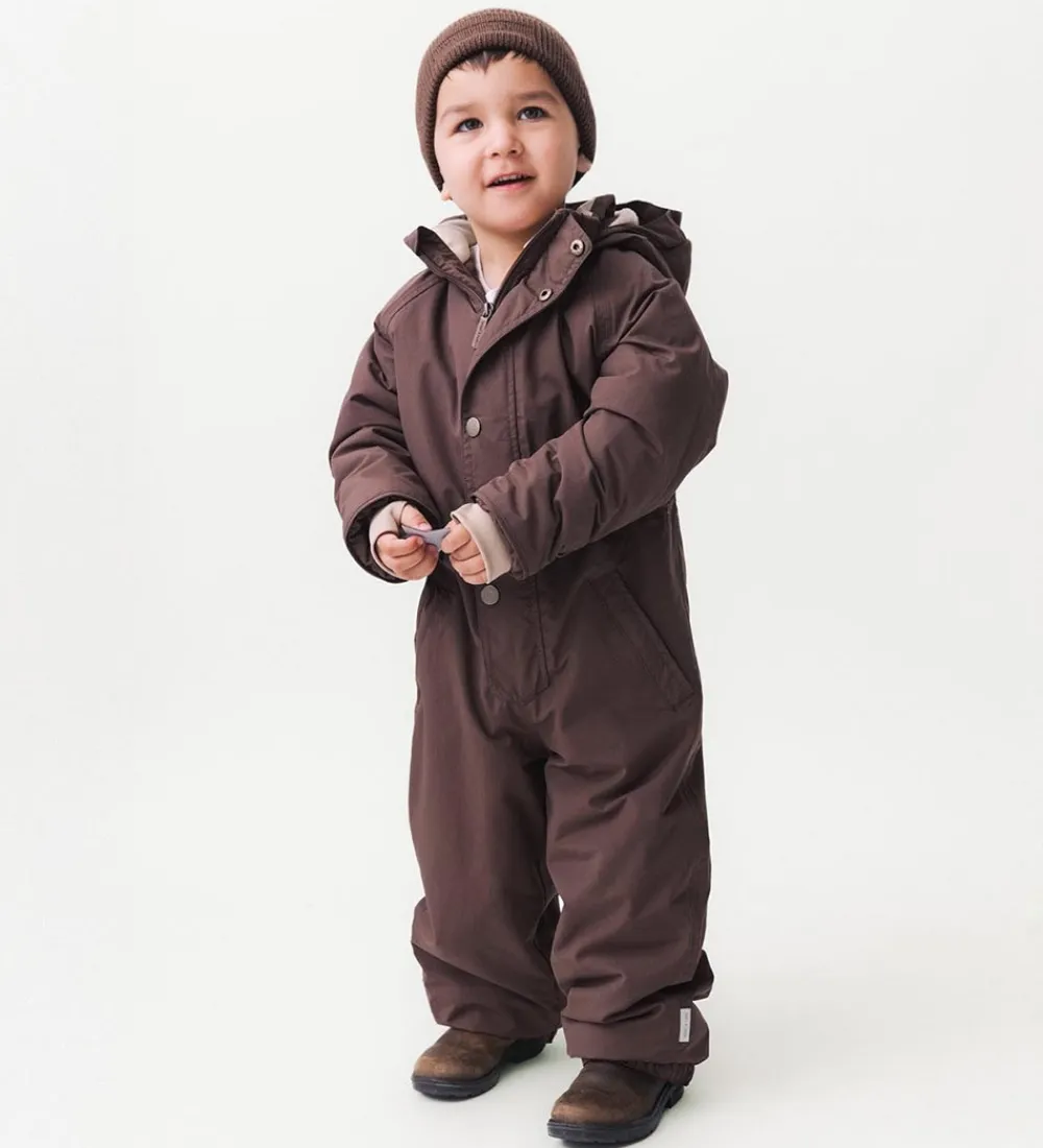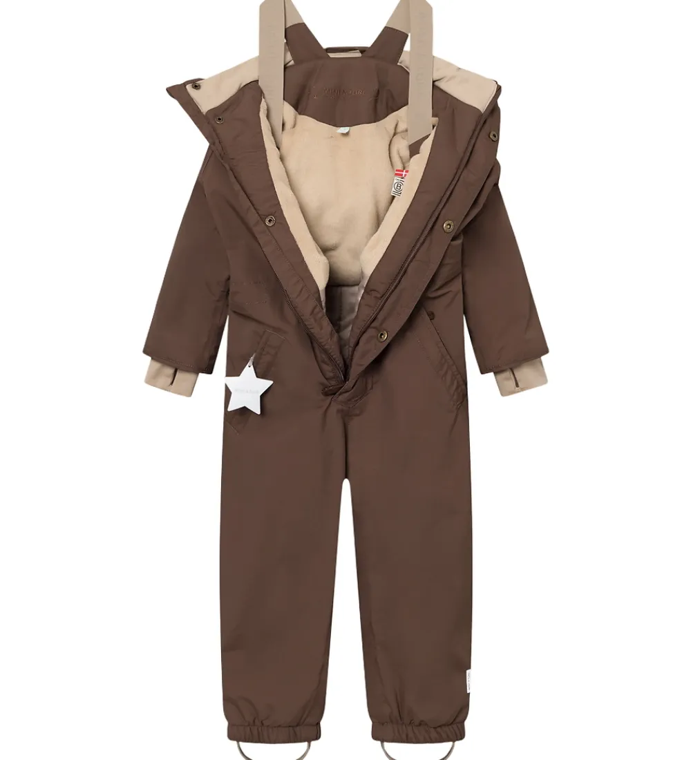 Lækker Mini A Ture flyverdragt i kastanjebrun. Flyverdragten er med beige for.