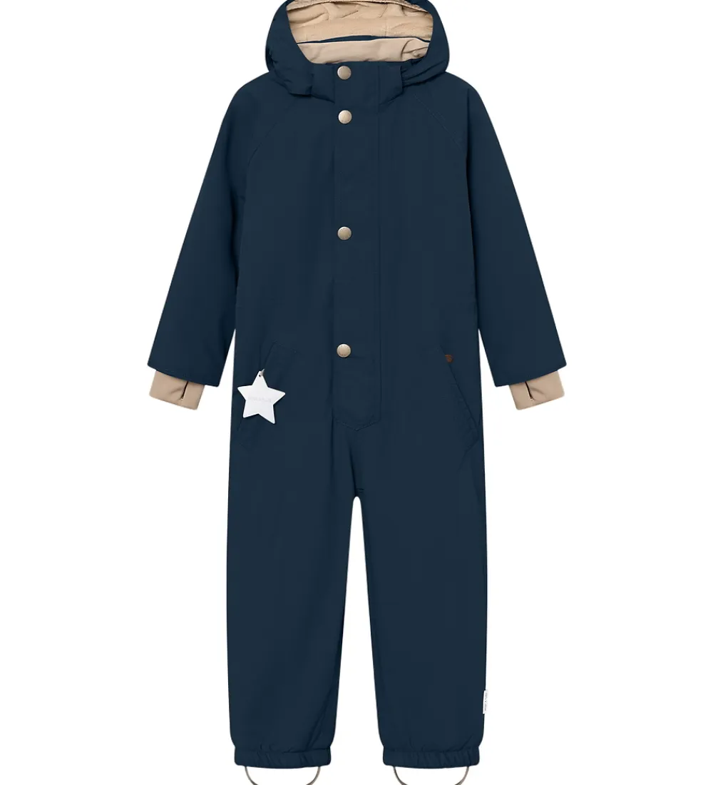 Lækker Mini A Ture flyverdragt i navyblå. Flyverdragten er med beige for.