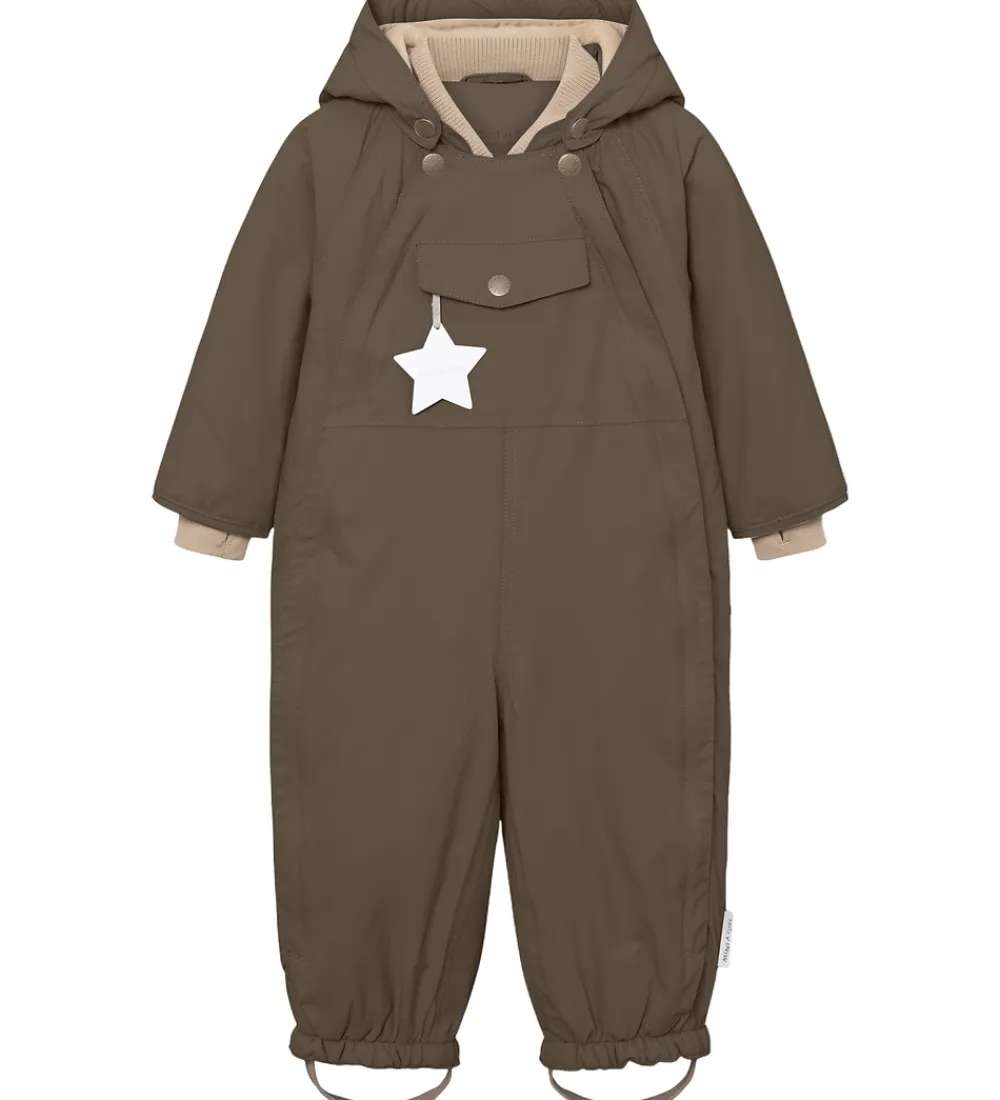 Fin Mini A Ture flyverdragt i mat mørkegrøn. Flyverdragten er med beige for.