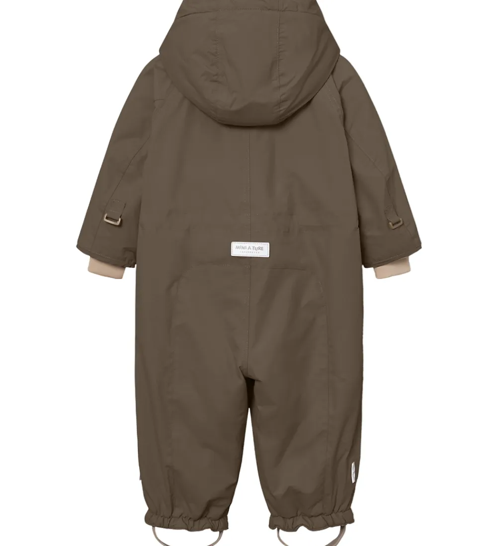 Mini A Ture flyverdragtens hætte er aftagelig, samt er den foret med fleece, og så har den en skjult elastiksnøre, så den sidder tæt omkring ansigtet. Der er en lækker ribkant i kraven, der gør den ekstra behagelig. Flyverdragten er foret med lækkert blødt fleece i kroppen, mens der er glatvævet for i ærmer og ben. Flyverdragten har en skjult elastiksnøre der kan justeres indvendigt, så flyverdragten sidder godt i taljen.
