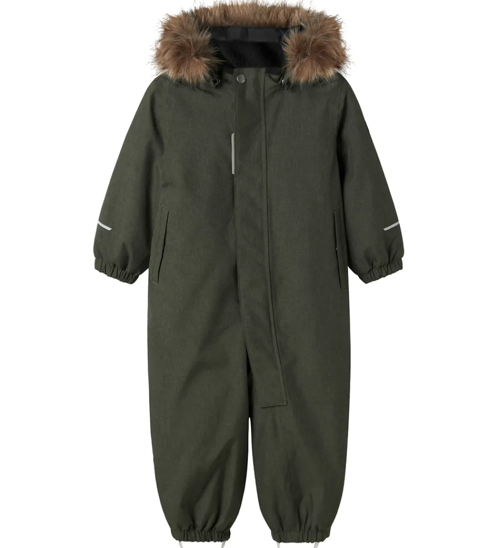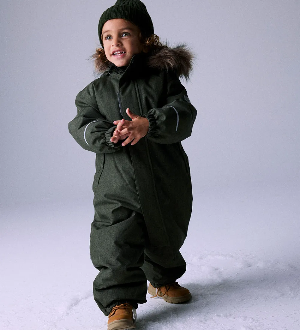 Fin Name It flyverdragt i meleret mørkegrøn.