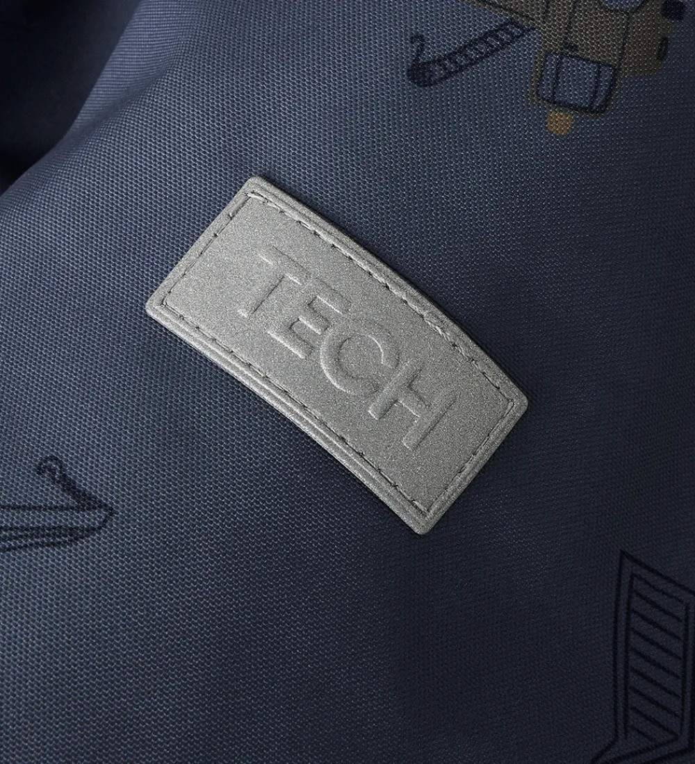 Name It flyverdragten åbnes med en lynlås med hagebeskytter og indvendig vindstolpe. Flyverdragten er godt vatteret og har et blødt fleecefor i kroppen, mens resten har et glatvævet for.