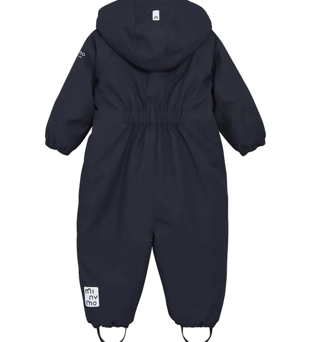Dejlig Minymo flyverdragt i navyblå med flere velplacerede refleksprint og -detaljer.