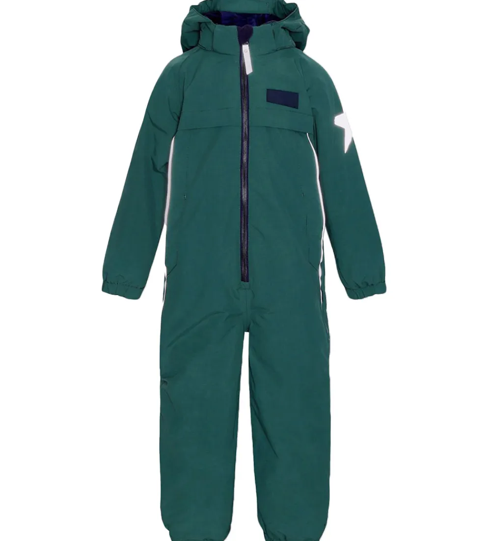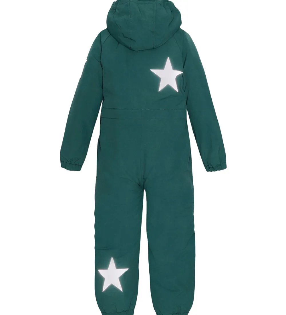 God Molo flyverdragt i mørkegrøn med en gummiapplikation på venstre bryst. Flyverdragten er udstyret med store stjernereflekser og reflekspipings.