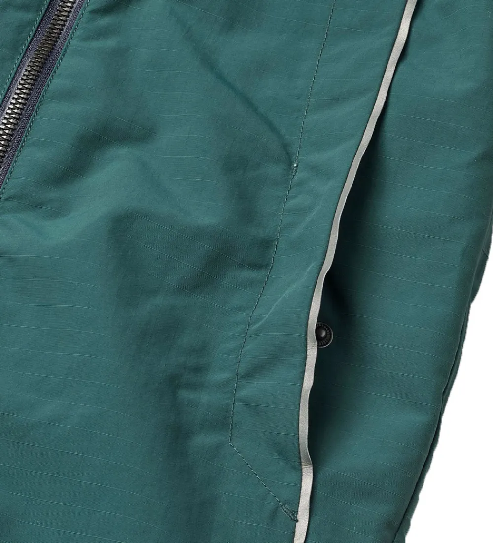 Flyverdragten har to skjulte, vertikale trykknapslommer på fronten. I lænden har den en indvendigt justerbar elastikkant.