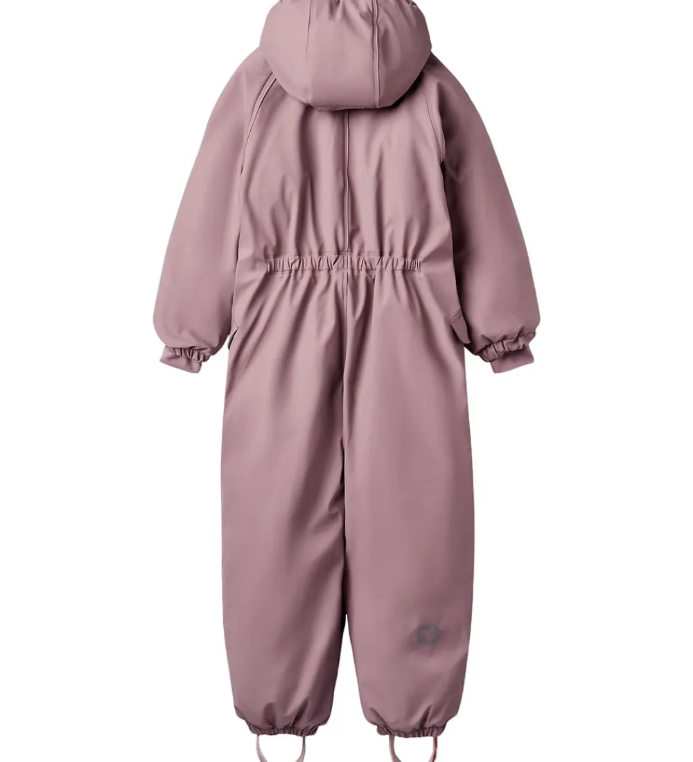 Wheat flyverdragten har lynlåsåbning med dobbelt vindstolpe, hvoraf den udvendige lukkes til med trykknapper. På fronten er der to tryknapslommer, og den har praktiske seler indvendigt. Flyverdragten har aftagelig hætte med trykknapper, og kan justeres med velcro på toppen. Der er ribkrave, som er behagelig for barnet at have tæt på huden.
