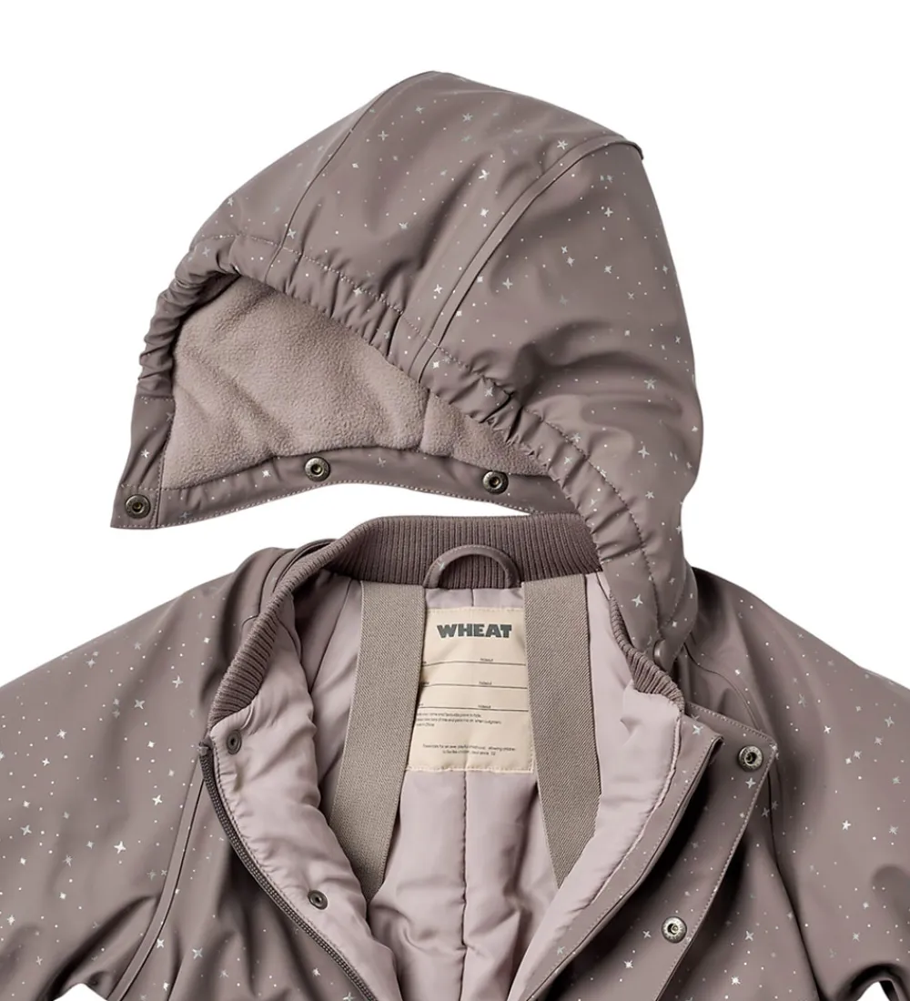 Lækker Wheat flyverdragt af PU i lilla med et lyst print af små stjerner.