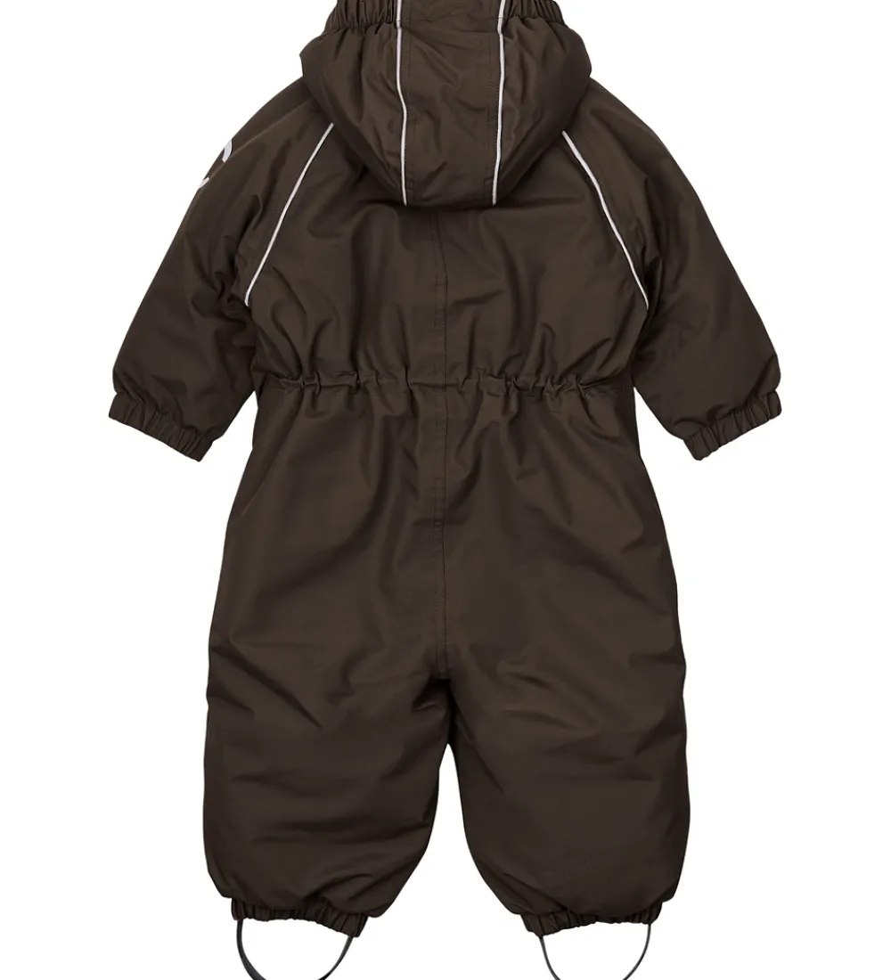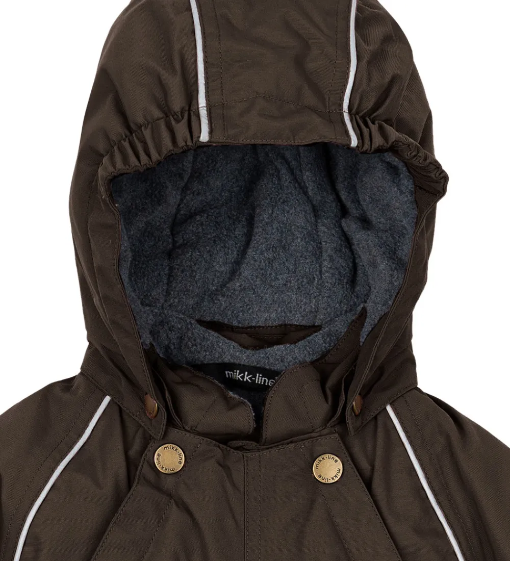 Sej Mikk-Line flyverdragt i mørkebrun med et lilla skær og med refleksdetaljer.
