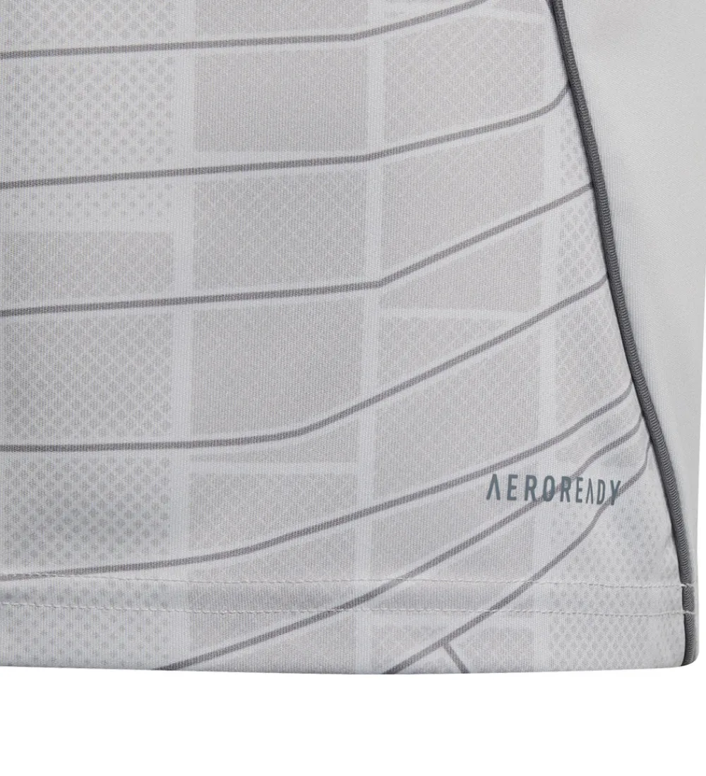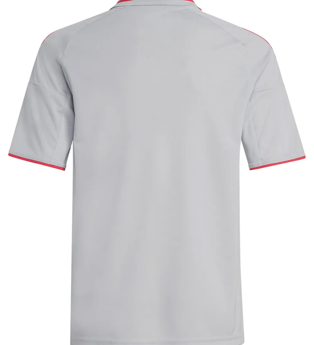 Flot adidas Performance fodboldtrøje i grå med røde detaljer og med et logo fortil for den franske foboldklub Olympique Lyonnais. Fodboldtrøjen er insipreret af holdets 3. sæt.