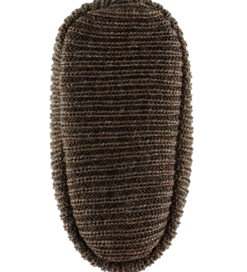 Skønne Joha futter i mørkebrun strik med ribstruktur. Joha futterne har en elastik omkring anklerne, som kan justeres med et spænde. De er fremstillet af to lag blødt merinould.