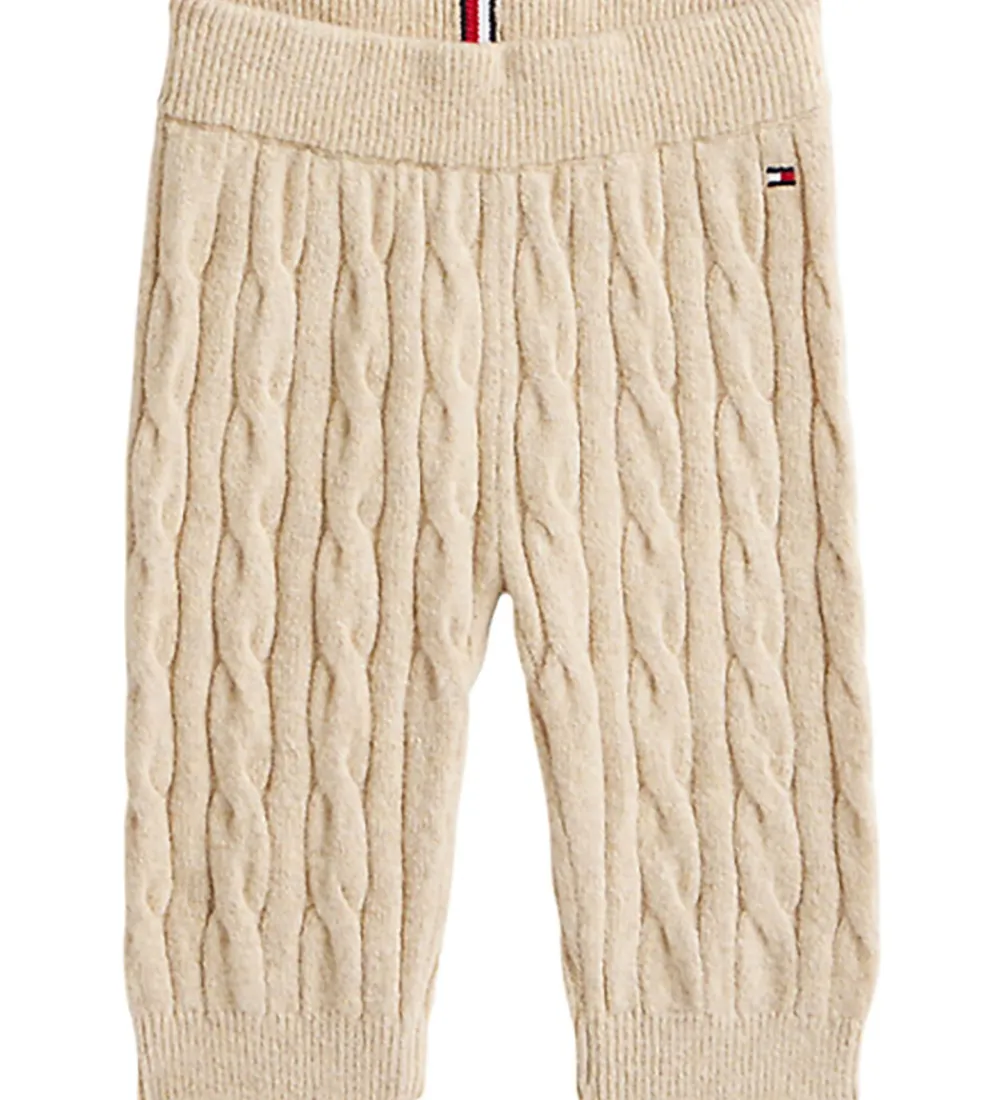 Elegant Tommy Hilfiger gaveæske med et sæt, der består af en bluse, et par bukser og en hue i ensfarvet brun i en strikket kvalitet med et flot, snoet mønster.