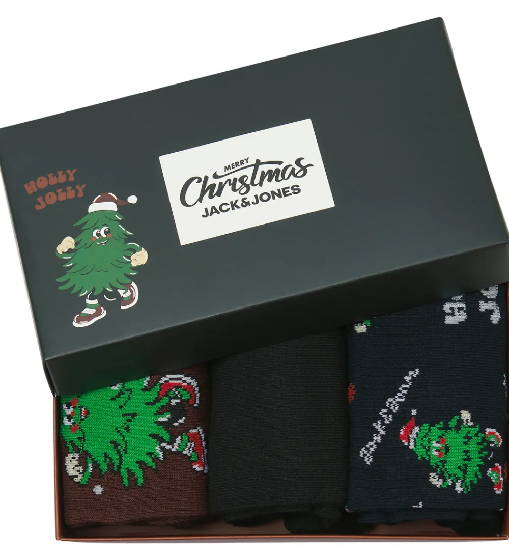 Herlig Jack & Jones gaveæske med tre par strømper. Alle par har fine julemotiver i mørkerøde, navyblå og grønne nuancer. Jack & Jones strømperne har en elastisk ribkant øverst for en god pasform.