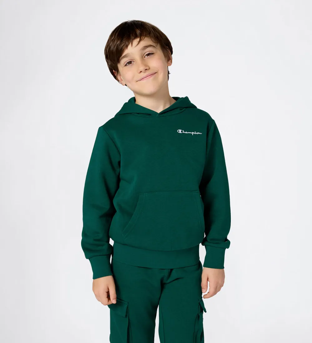 Smart hættetrøje fra Champion i mørkegrøn. Hættetrøjen har et hvidt, broderet logo på venstre bryst og et lille logoprint på venstre ærme. Champion hættetrøjen har en blød hætte og en rummelig kængurulomme. Den har ribkanter ved håndleddene og i livet, som giver en god pasform. Indvendigt er der blødt, børstet bomuld.