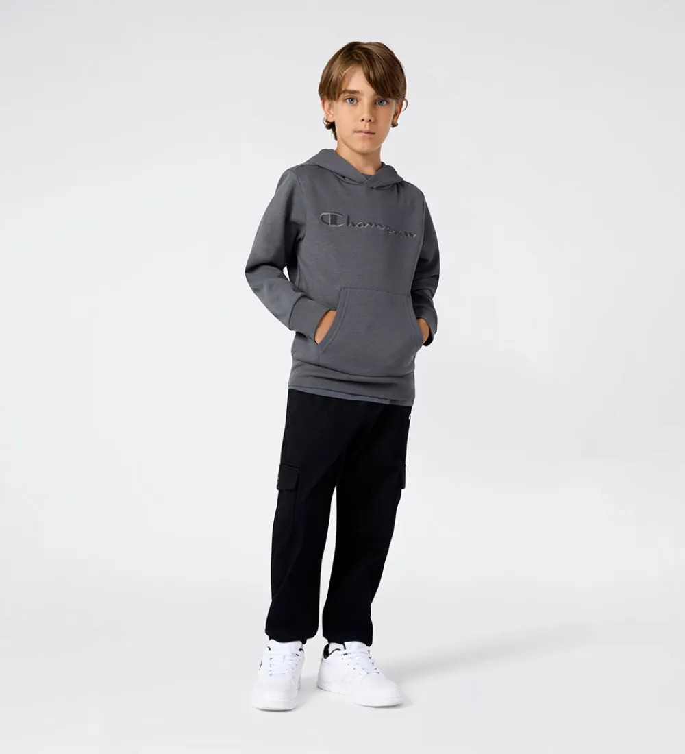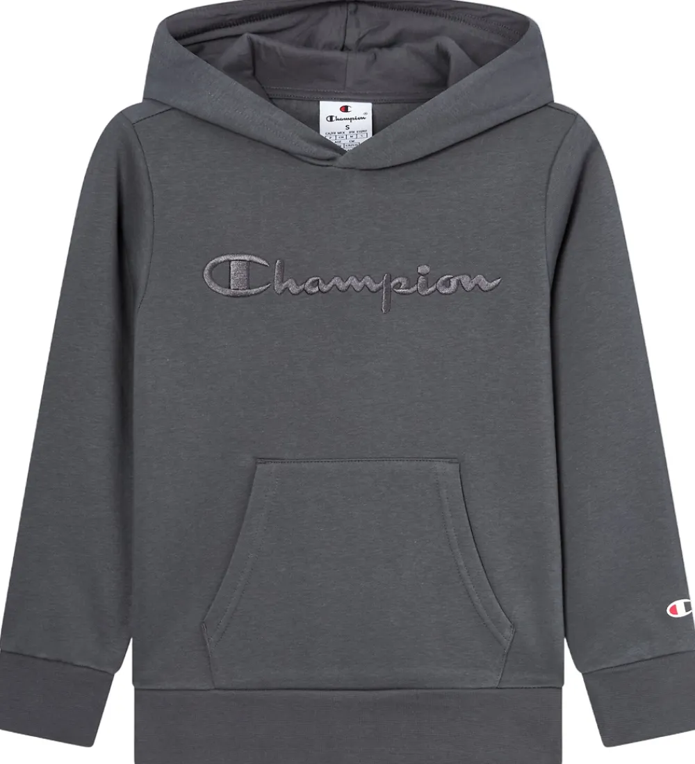 Flot hættetrøje fra Champion i grå med et diskret logo broderet på brystet. Champion hættetrøjen har en blød hætte og en rummelig kængurulomme. Den har ribkanter ved håndleddene og i livet, som giver en god pasform. Indvendigt er der blødt, børstet bomuld.