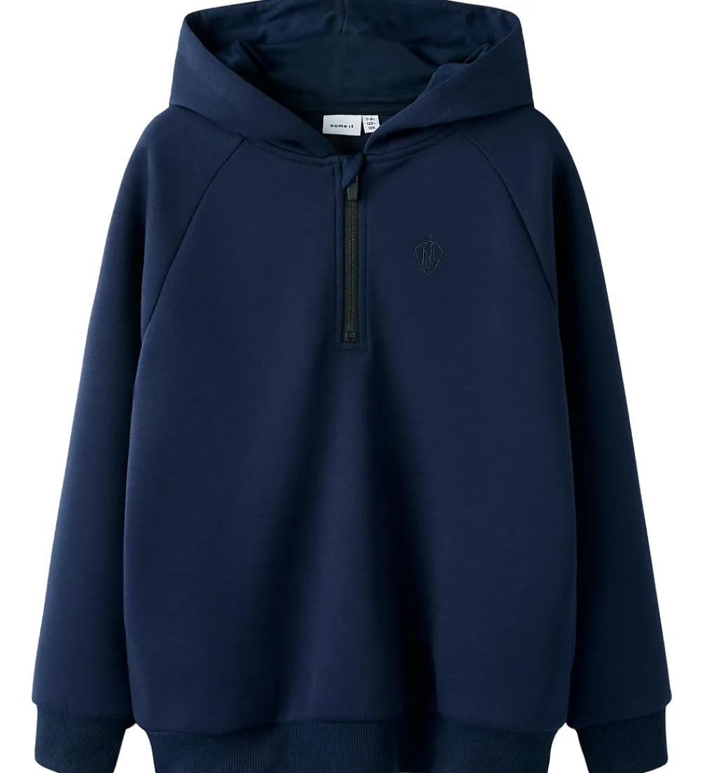 Hættetrøjen har en praktisk lynlås ved halsen og et diskret logo broderet på brystet. Name It hættetrøjen har en behagelig hætte og ribkanter ved håndleddene samt i livet. Designet er enkelt og funktionelt med en klassisk pasform.