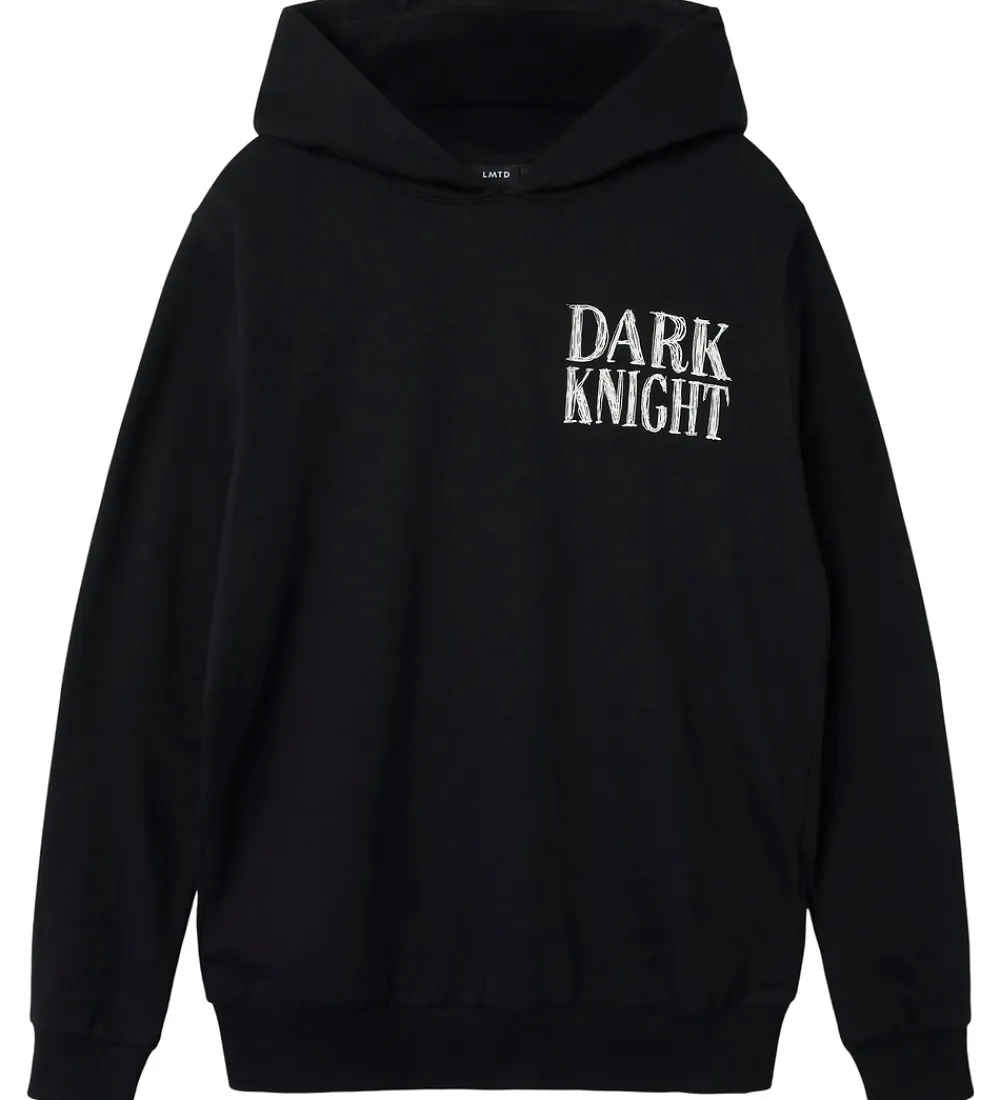 Hættetrøjen har et iøjnefaldende print på fronten med teksten “Dark Knight” i en lys kontrastfarve, og et stort Batman-print på bagsiden. LMTD hættetrøjen er designet med ribkanter ved ærmerne og i livet, hvilket giver et pænt afsluttet look.