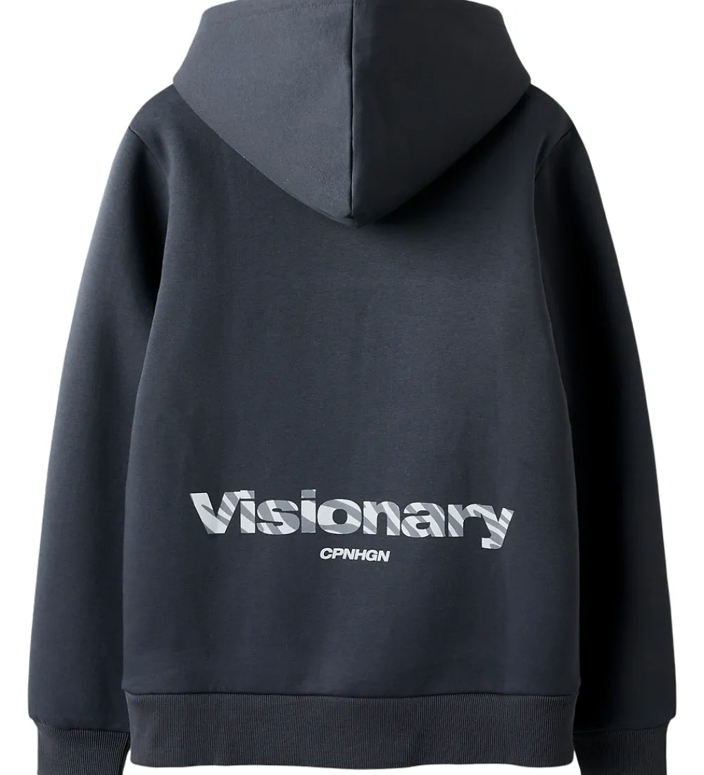 Stilren LMTD hættetrøje i en mørkegrå nuance med “Visionary” print på brystet og på bagsiden.