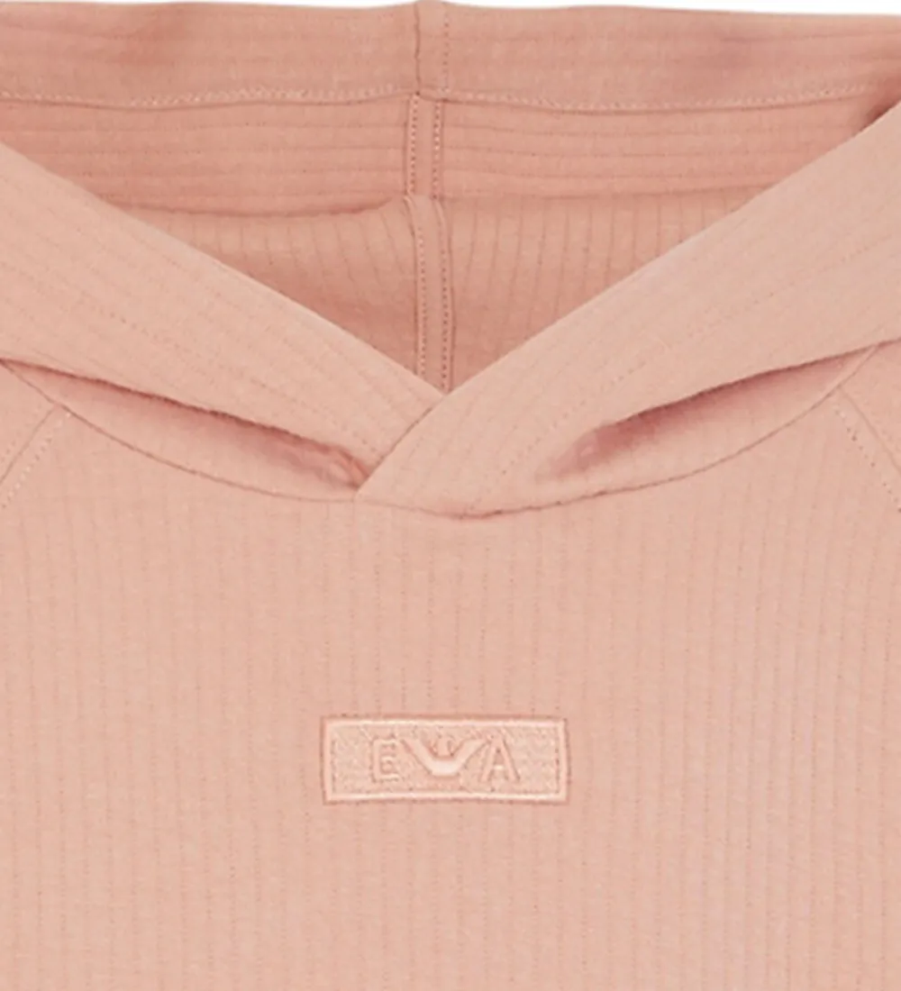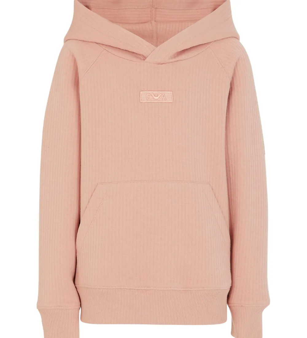 Fin Emporio Armani hættetrøje i rosa med en diskret quiltet struktur, der giver lodrette linker. Hættetrøjen har et stilfuldt, broderet logo på brystet. Emporio Armanis hættetrøje har en klassisk, rummelig kængurulomme og bløde ribkanter ved livet og ærmerne, der sikrer en god pasform. Hættetrøjen er lavet i en blød bomuldsjersery.