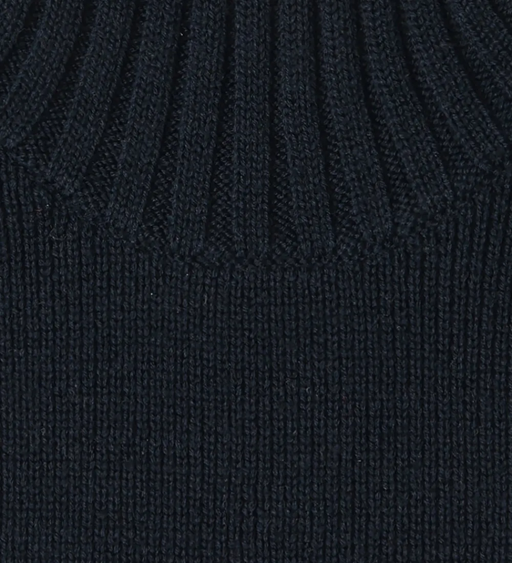 Elegant FUB halsedisse i en dyb, marineblå farve. FUB halsedissen har en klassisk, ribstrikket struktur med en høj hals, der giver en god pasform. Den enkle stil gør halsedissen anvendelig i mange sammenhænge.