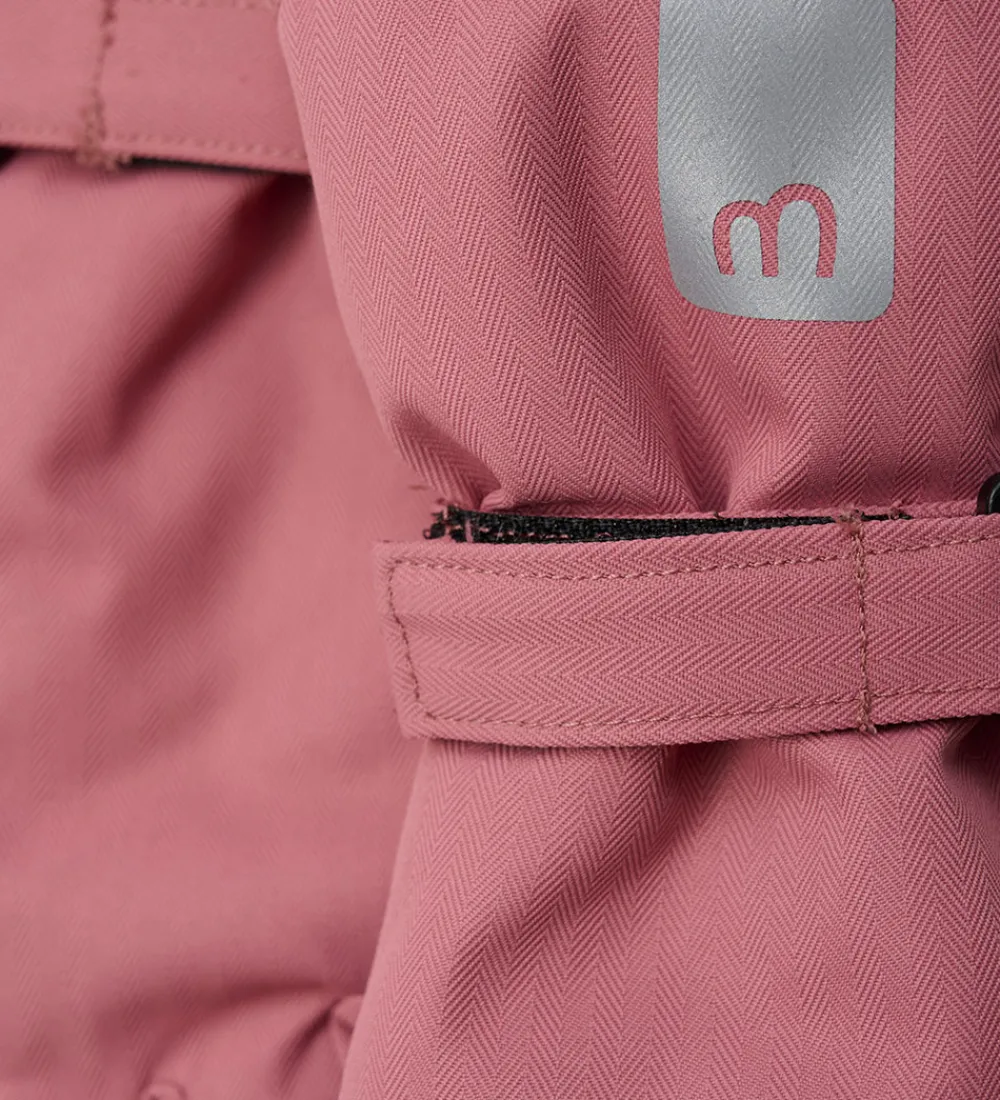 Lækre Minymo handsker i en varm rosa nuance. Handskerne har brede ribkanter i åbningerne, og de kan strammes ind ved håndleddene med velcroremme. Indvendigt er der blødt fleecefor. Handskerne er vandtætte, åbndbare og slidstærke.