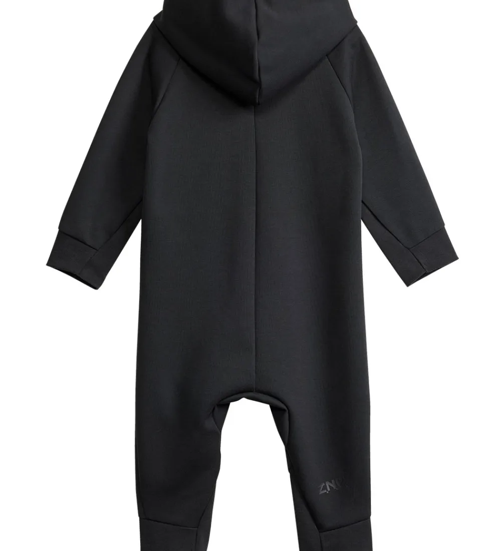 adidas Performance heldragten har lange ærmer og lange ben med brede ribkanter. Den har en fastsyet hætte, og den åbnes fortil med en lynlås helt ned til venstre fod.