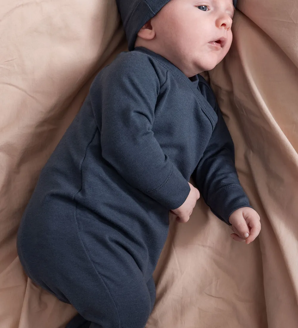 Heldragten fra MarMar har lange ærmer og ben med faste fødder, og den lukkes med trykknapper langs siden. En praktisk bindedetalje ved siden giver et ekstra touch til designet.