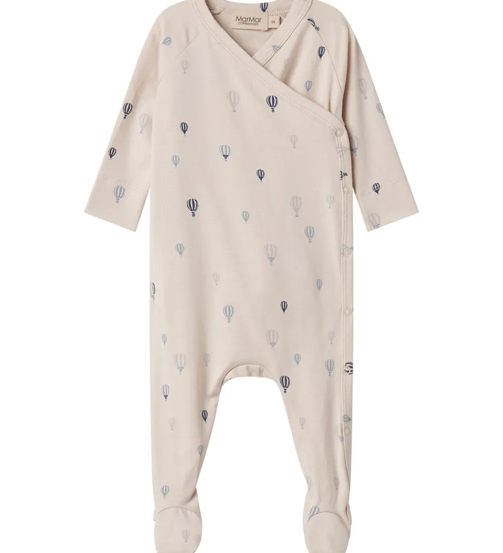 Elegant MarMar heldragt i en lysebeige nuance med et delikat luftballonprint i blå nuancer.