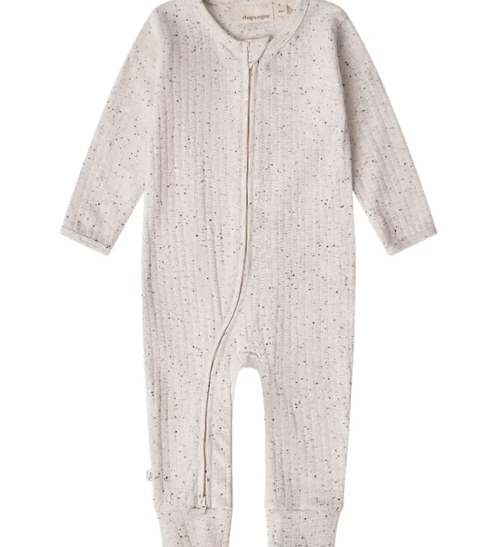 Elegant heldragt fra Thats Mine i meleret, lysebeige nuance med diskrete, sorte prikker, der skaber et enkelt og stilrent udtryk.