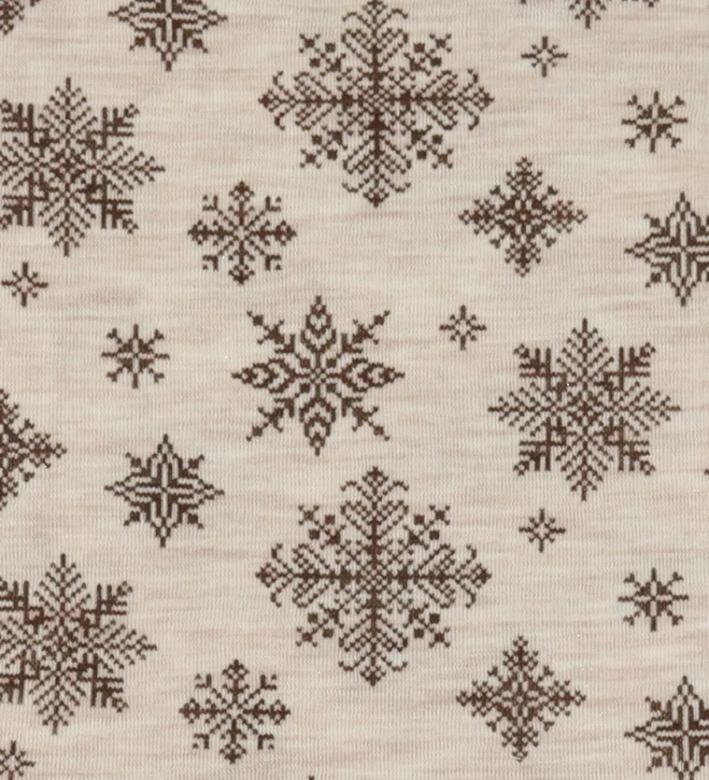 Dejlig Joha heldragt i beige med fine mørkebrune snefnug i forskellige former og størrelser.