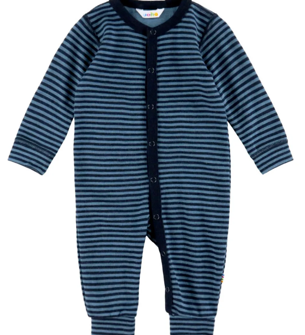Praktisk Joha heldragt med et klassisk, mørkeblå og lyseblå stribemønster.