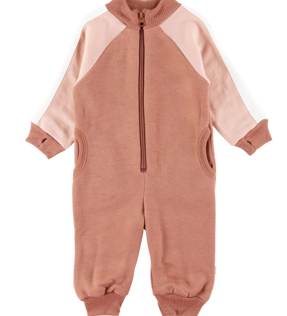 Dejlig Joha heldragt i en flot rødbrun farve med lyserøde og hvide detaljer på ærmerne.
