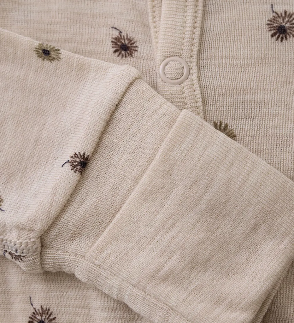 CeLaVi heldragten har lange ærmer og ben samt praktiske trykknapper langs fronten, der sikrer nem påklædning. Heldragten er lavet af blødt og lækkert merinould.