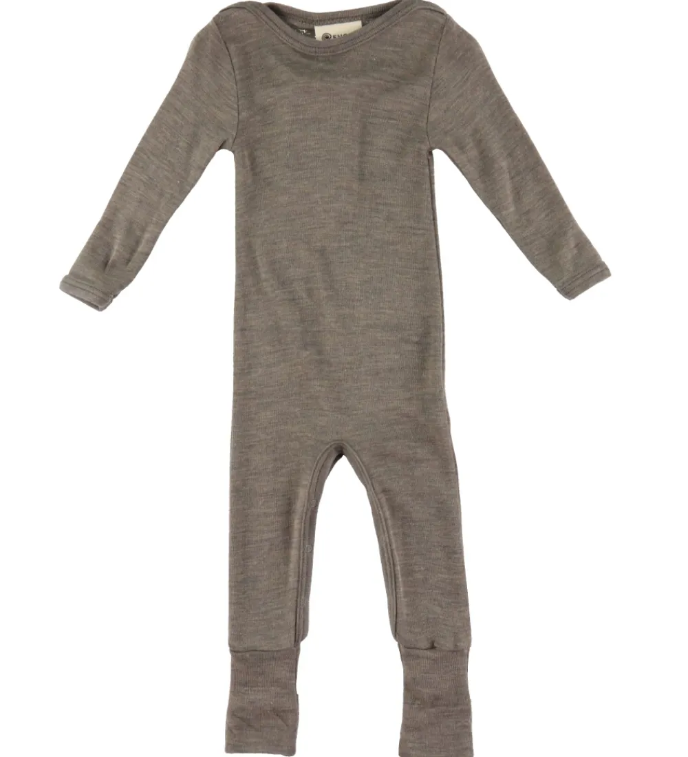 Engel heldragten har lange ærmer me smalle ribkanter, og den har lange ben med praktiske ombuk. Heldragten åbnes ved hver skulder med en trykknap, og mellem benene kan den åbnes ned til kanterne med trykknapper. Heldragten er lavet i en blød og lækker blanding af uld og silke