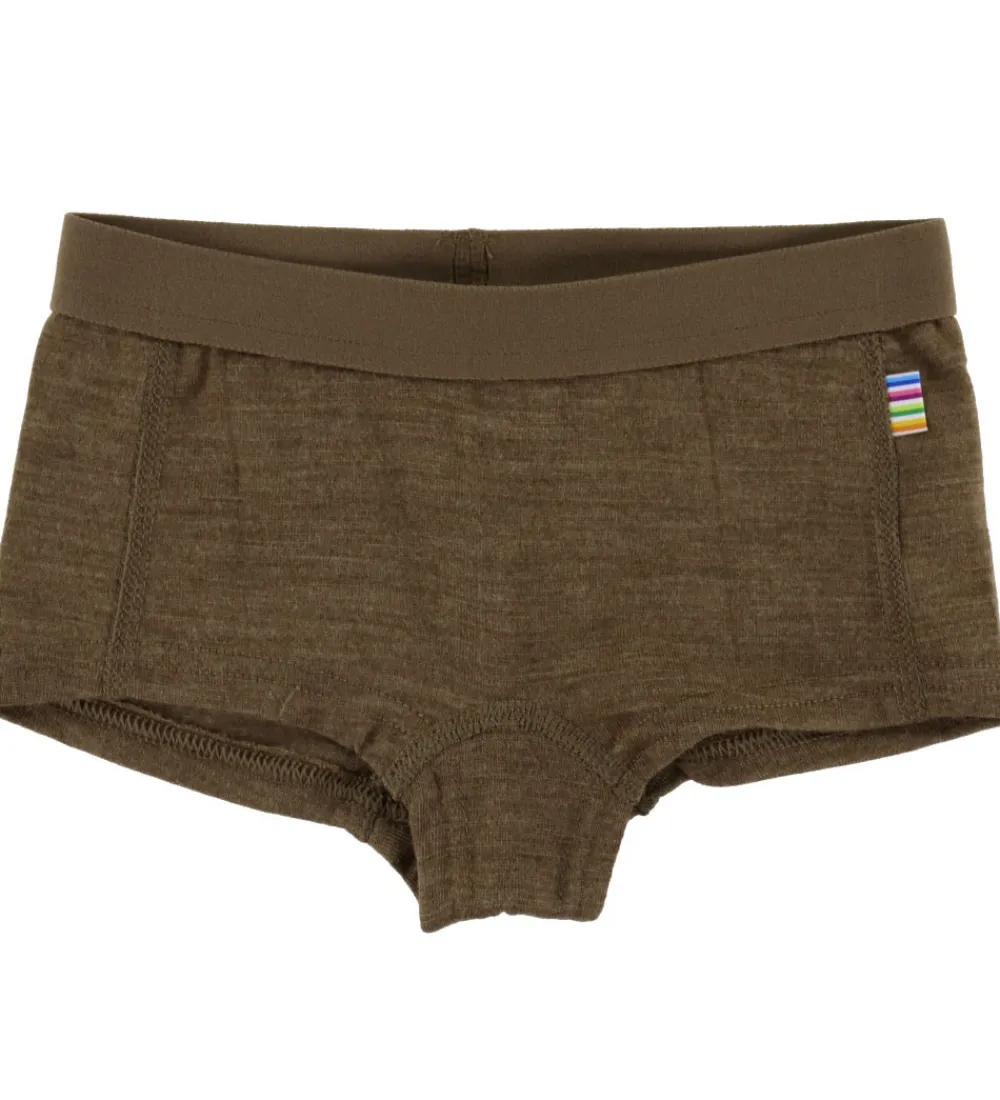 Velsiddende Joha hipsters i en enkel farve af brun. Joha hipstersene har en elastik i livet for en god pasform. Materialet fremstår ensfarvet uden mønster, og der er en lille, farverig detalje på venstre side. Stoffets struktur er glat, hvilket bidrager til den generelle fremtoning.