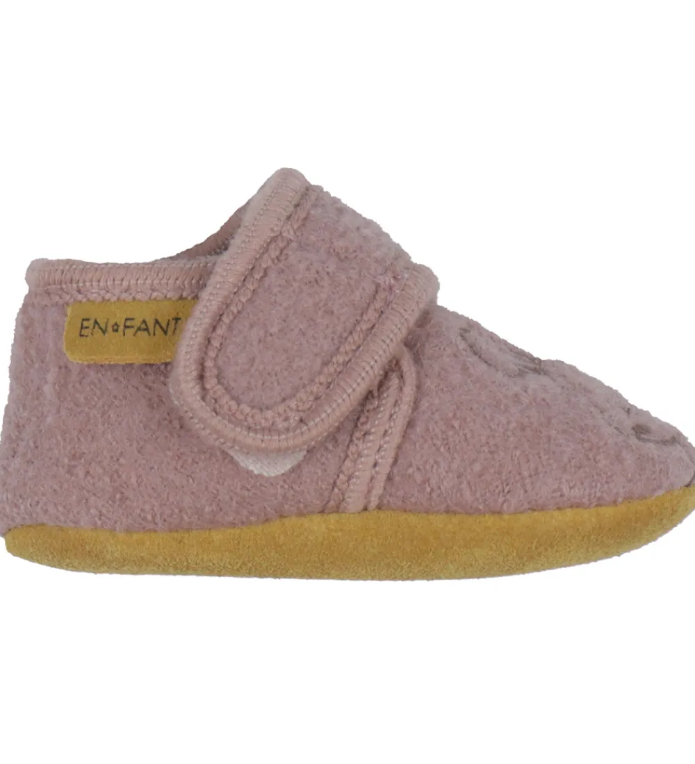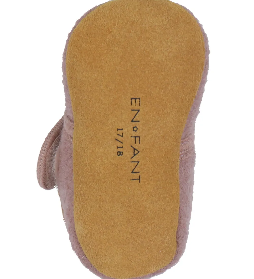 En Fant hjemmeskoene lukkes med en bred velcrorem over foden, så de er hurtige at tage af og på. Hjemmeskoene har en ydersål af ruskind, som sikrer et godt fodfæste.