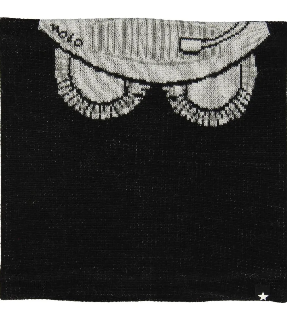 Molo huen har et rundt hovedform med et syningskryds på toppen og består af to lag. Tuben har en klassisk firkantet form. Når barnet har sættet på, ser det ud som om, det har en rumhjelm på. Indvendigter er der blødt fleece.