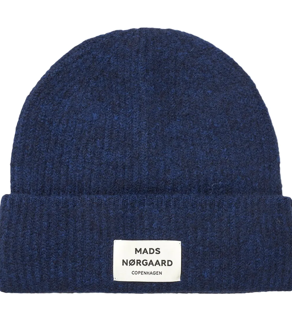 Lækker Mads Nørgaard hue i ensfarvet navy i en strikket kvalitet med en flot ribstruktur.