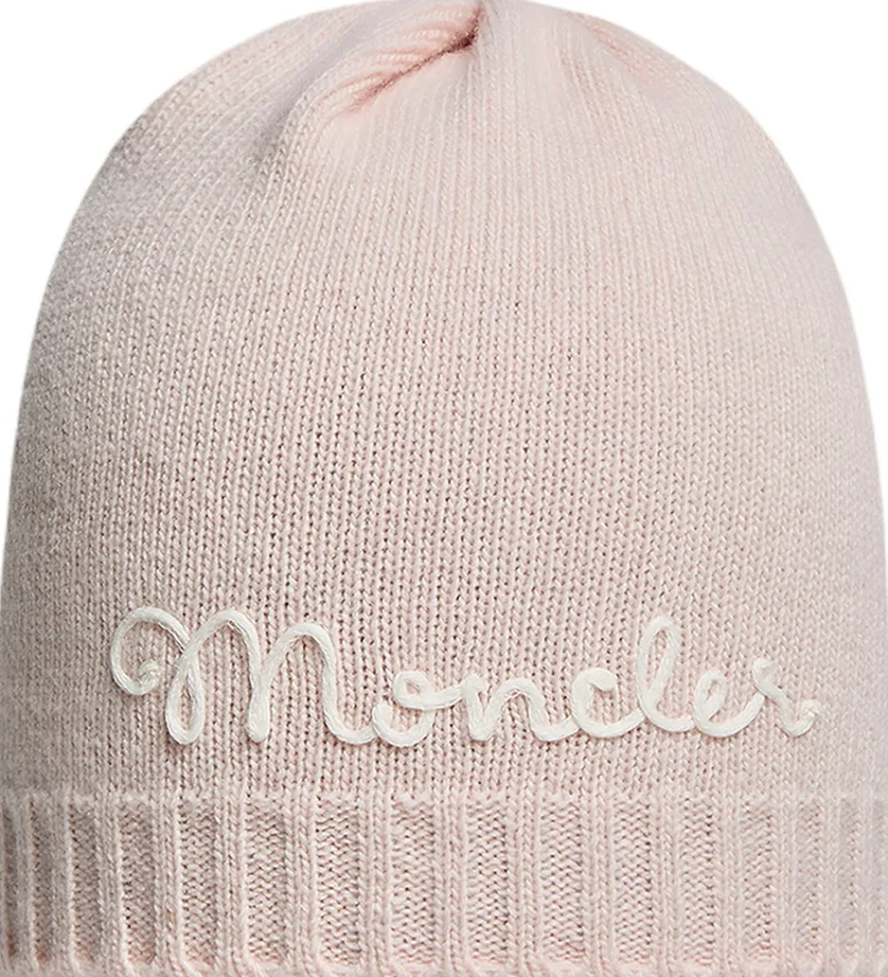 Elegant Moncler hue i en sart rosa farve og i en strikket kvalitet i en blød uldblanding. Huens forside prydes af et broderet Moncler logo i en lys skrift, der tilføjer et stilfuldt touch. Huen hra en rund hovedform, og den har en bred ribkant i bunden. Huen består af et enkelt lag i en let kvalitet.