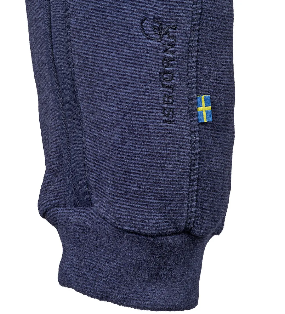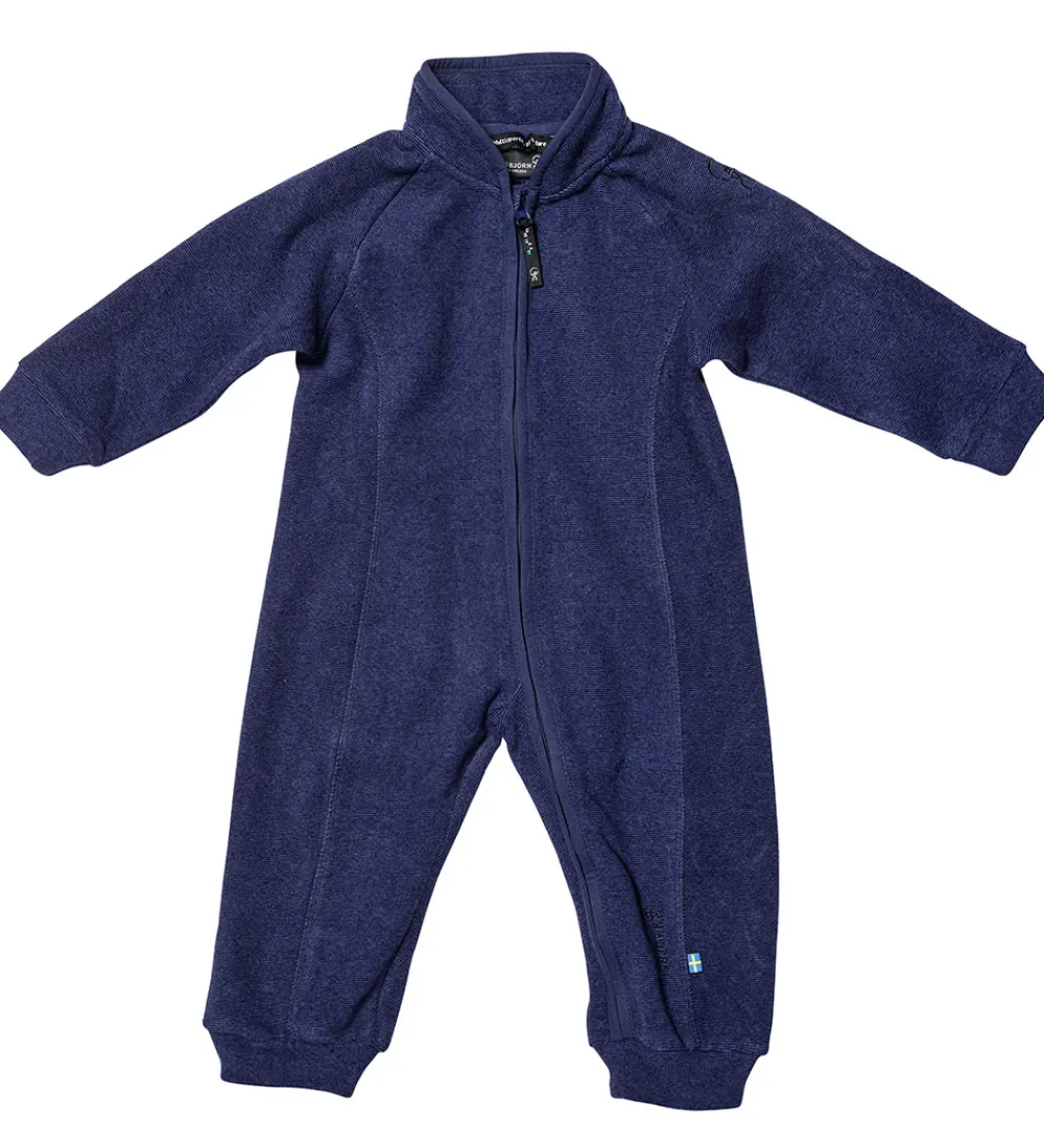 Lækker Isbjörn Of Sweden fleecedragt i navyblå med fine striber og syningsdetaljer.