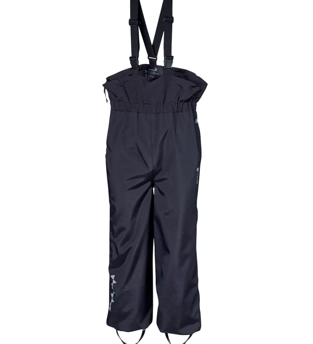 Isbjörn Of Sweden skalbuksene går højt op og dækker en god del af overkroppen. De har smarte, justerbare seler, som samles på ryggen, og lukkes med klipspænder fortil. Omkring taljen er der en praktisk elastikkant, som kan løsnes ved hjælp af en lynlås i højre side.