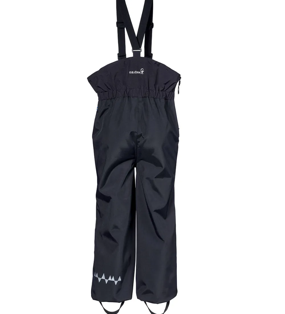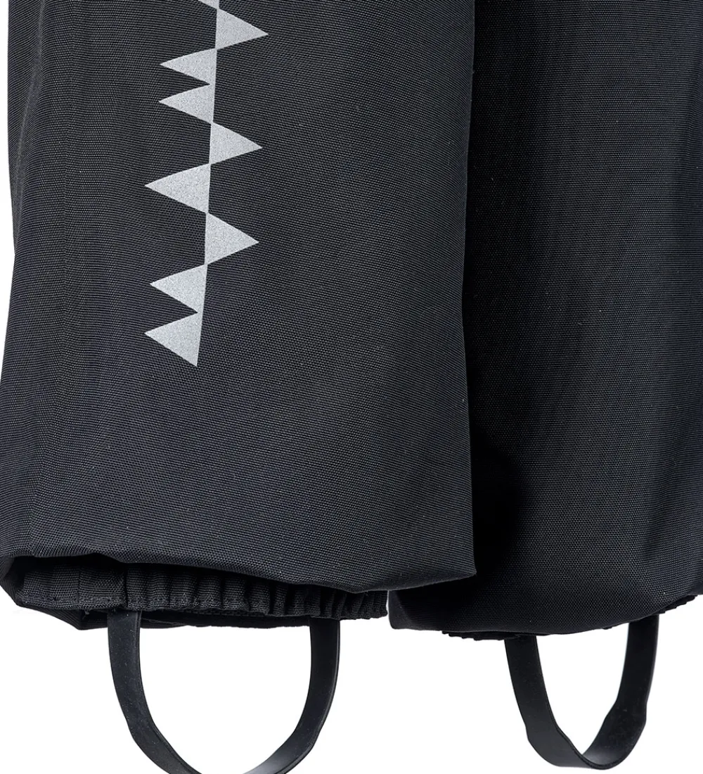 Isbjörn Of Sweden skalbuksernes benåbninger har elastikkanter med indvendig gummibelægning. Der er også aftagelige, justerbare støvlestropper i gummi, som der medfølger én ekstra af.