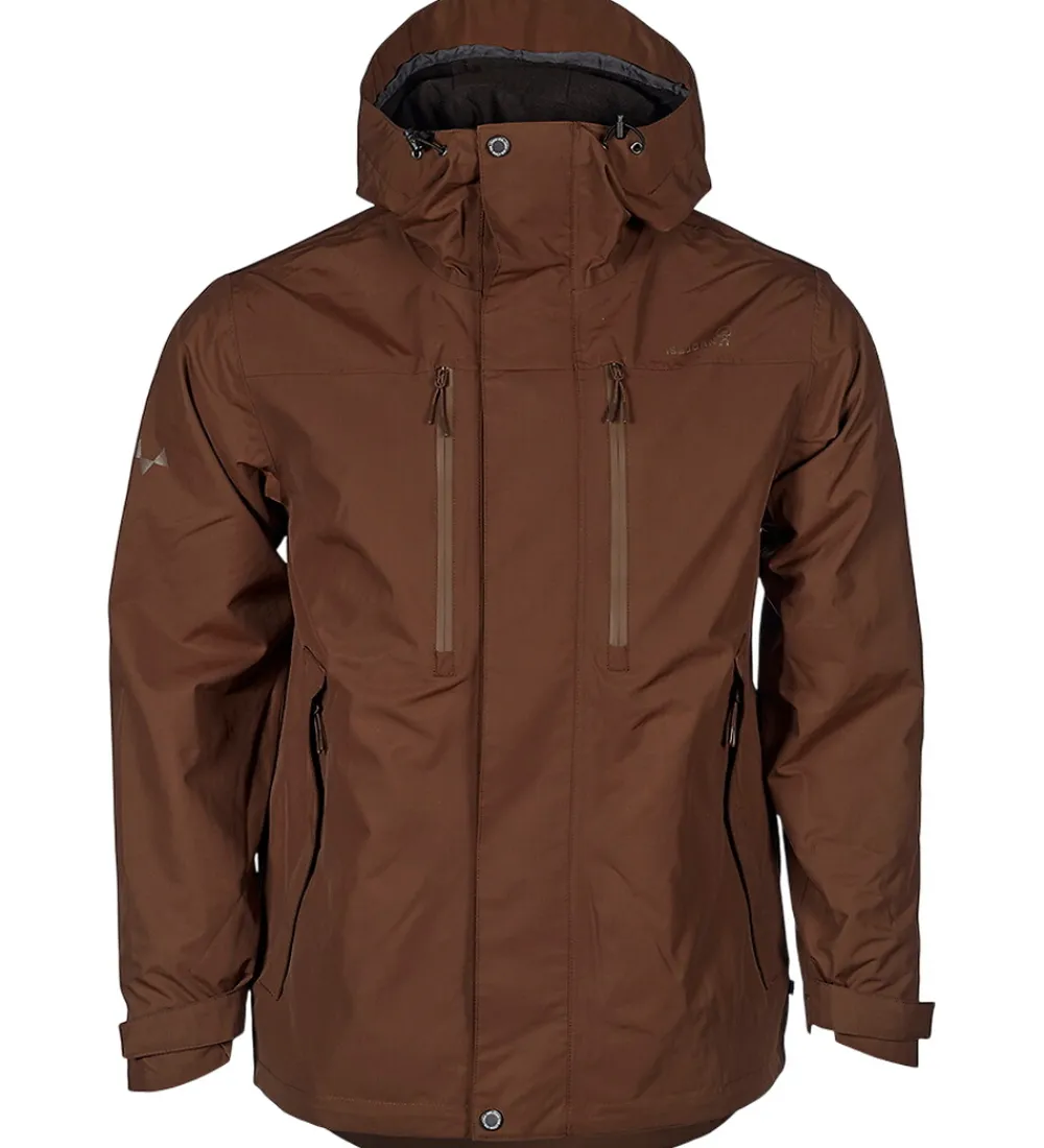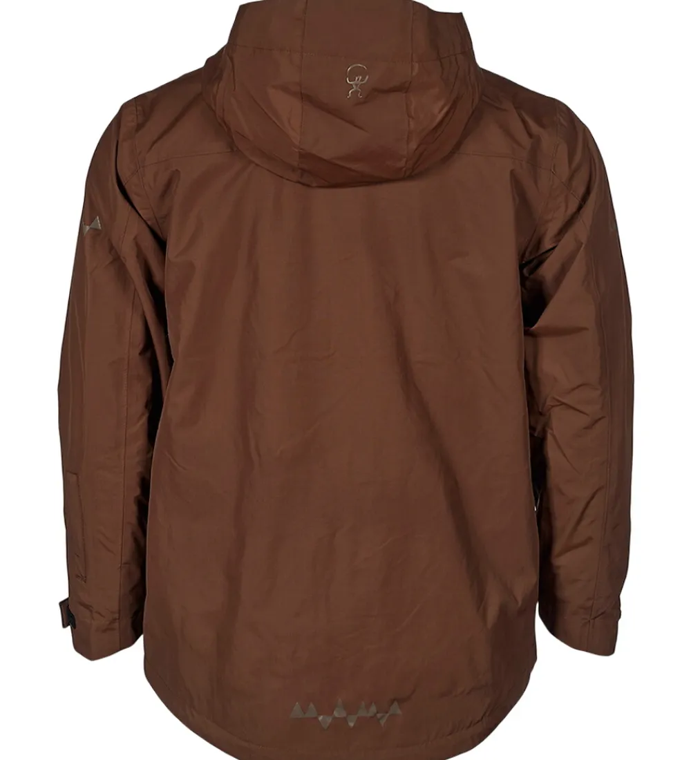 Flot Isbjörn Of Sweden skaljakke i brun. Skaljakken har logoprint på venstre bryst og hætten samt smarte refleksprint på lænden og begge skuldre.