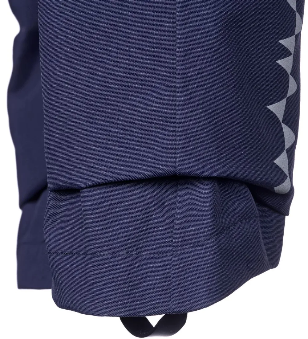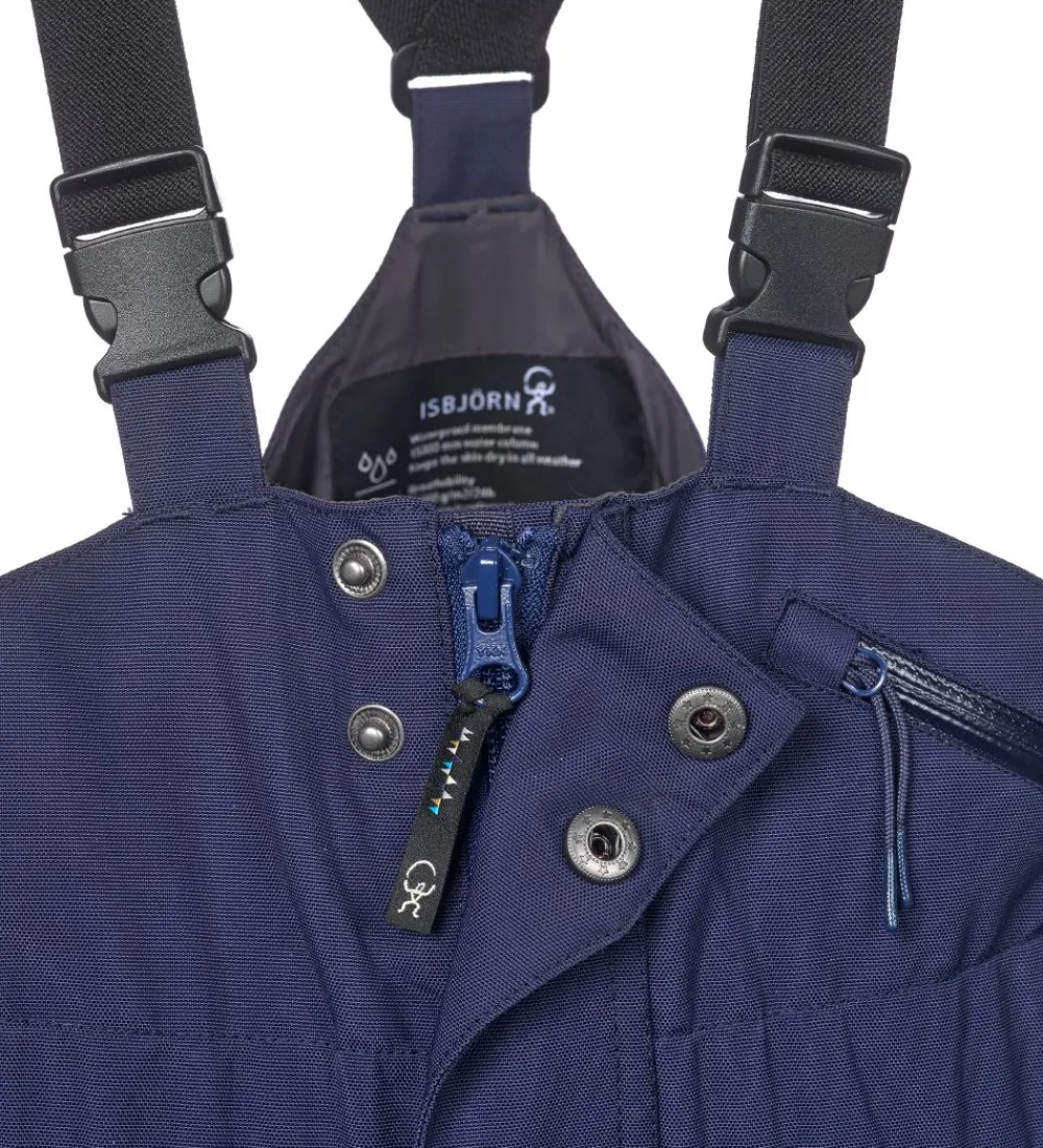 Skønne Isbjörn Of Sweden skibukser i navyblå med refleksprint og hvide logoprint.