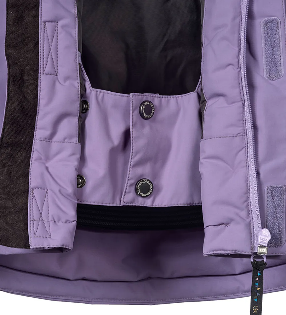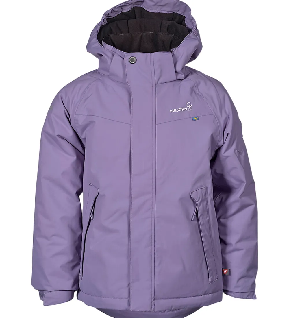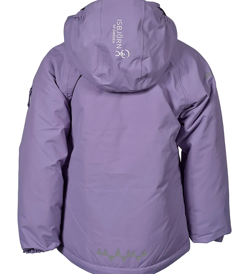 Flot Isbjörn Of Sweden vinterjakke i lavendel. Vinterjakken har hvide logoprint på venstre bryst og hætten samt smarte refleksprint på lænden og højre skulder.