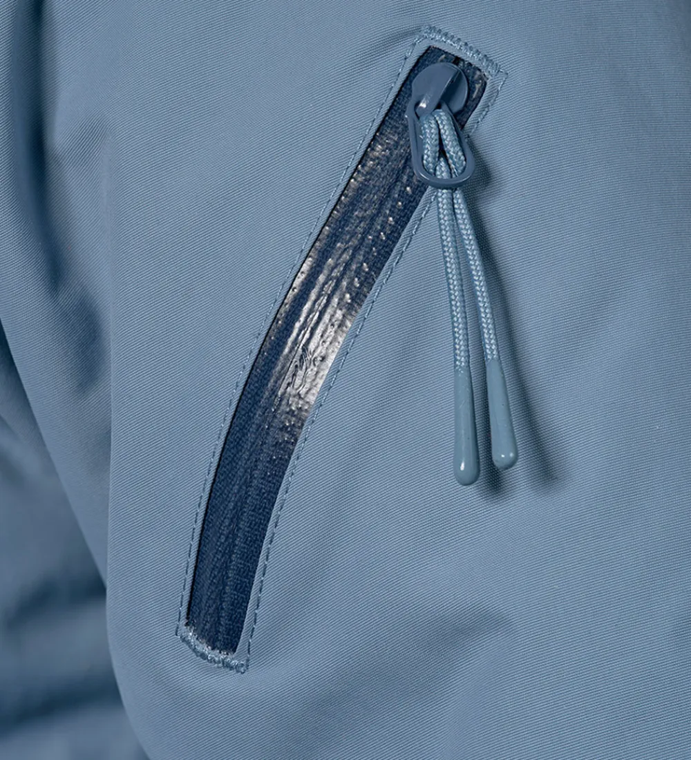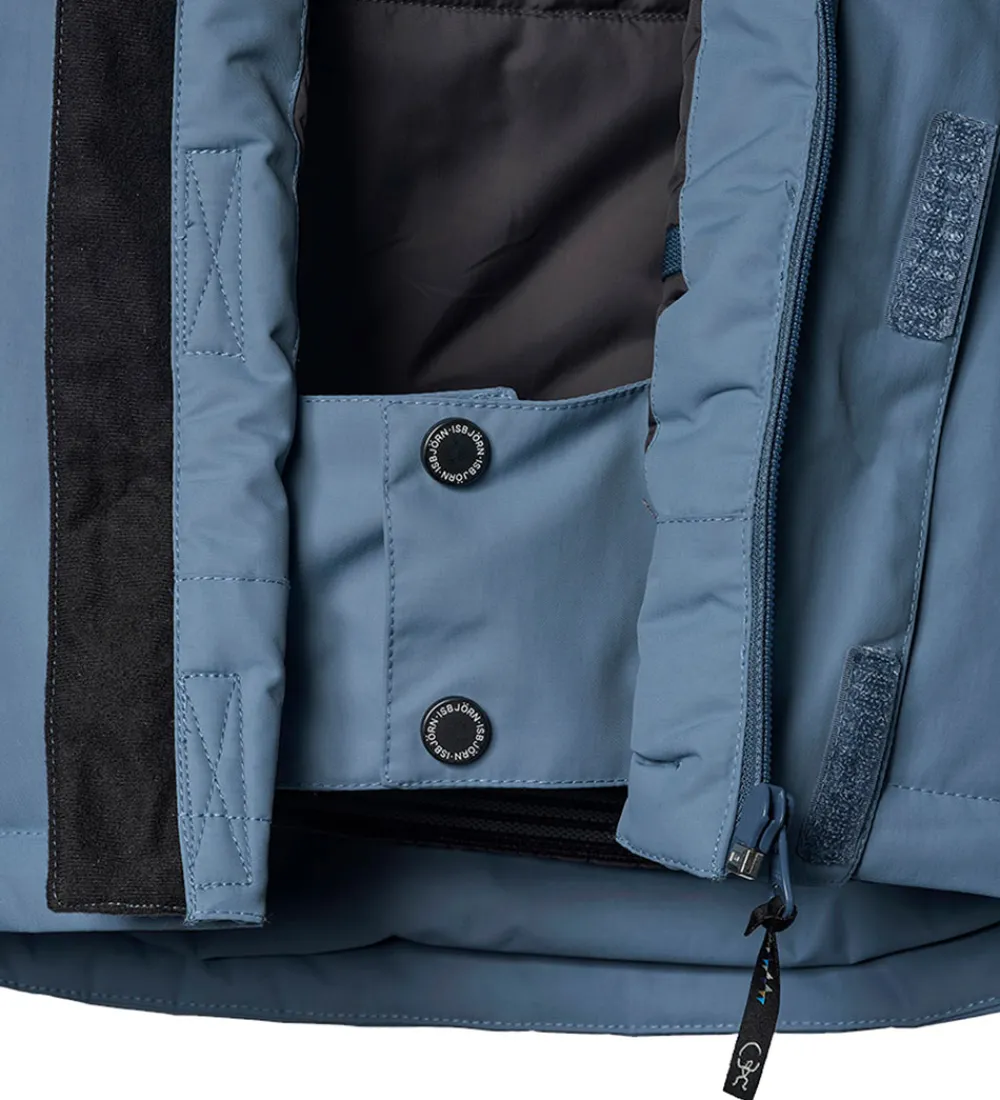 Ærmernes åbninger har praktiske elastikkanter, der kan strammes ind med velcroremme, og snefang med brede, elastiske kanter.