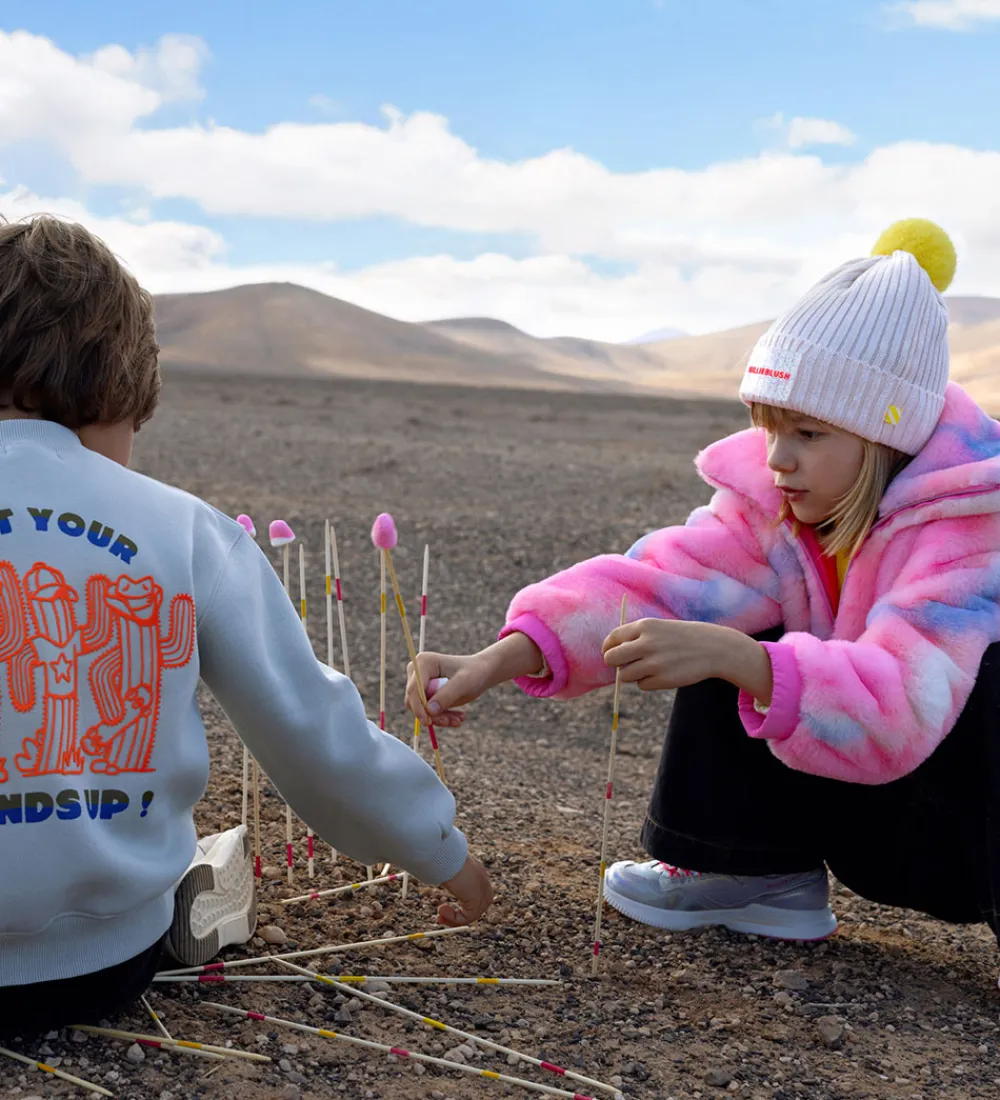 Skøn Billieblush jakke med en overflade af lækkerblødt, imiteret pels, som er i en farverig blanding af pink, rosa og lyseblå.