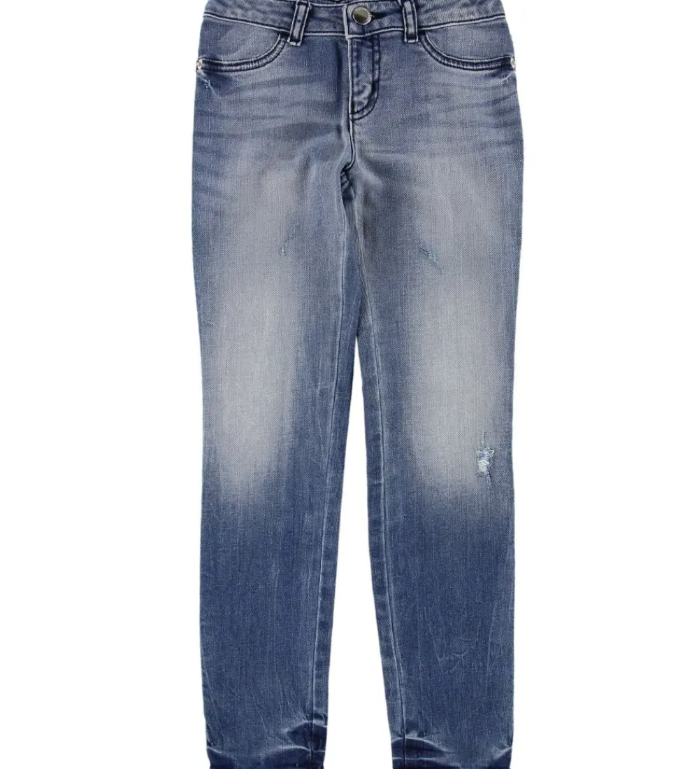 Smarte Emporio Armani jeans i lys denim med et slidt look og i en strækbar kvalitet. Bukserne har sølvfarvede knapper og nitter.