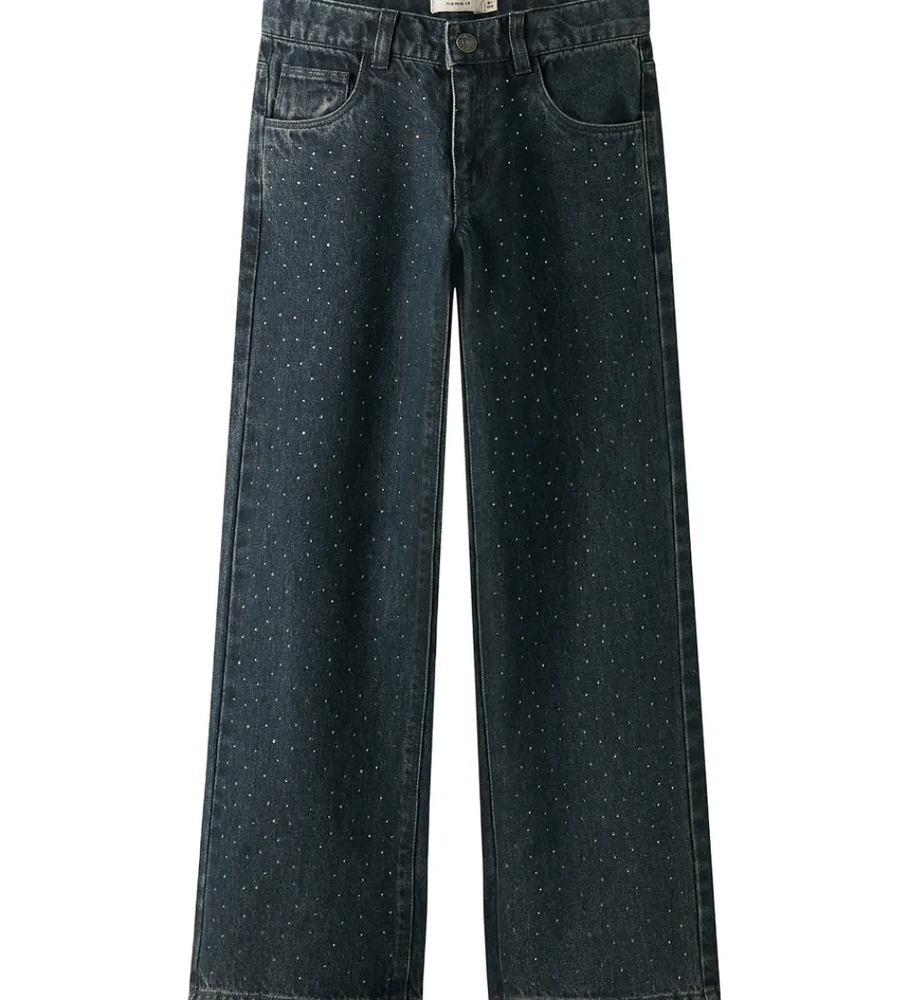 Stilfulde Name It jeans i en mørk gråblå denim nuance pyntet med fine, små rhinsten.
