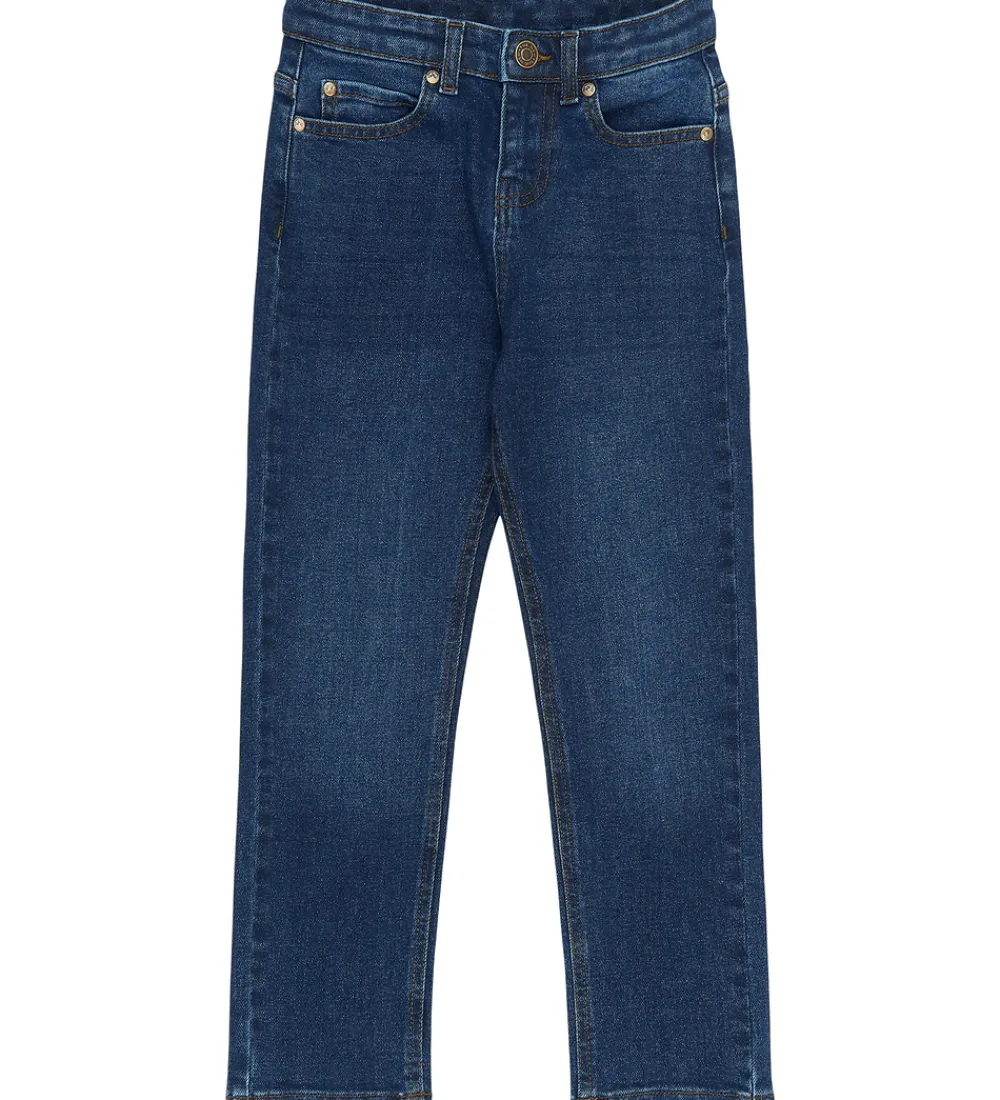 Stilfulde The New jeans i mørkeblå denim med et let vasket look. The New jeansene har en elastisk talje, som kan justeres med knapper indvendigt. De lukkes fortil med en hægte og lynlås. Jeansene har bæltestropper og lommer på for- og bagside. De har en klassisk pasform.